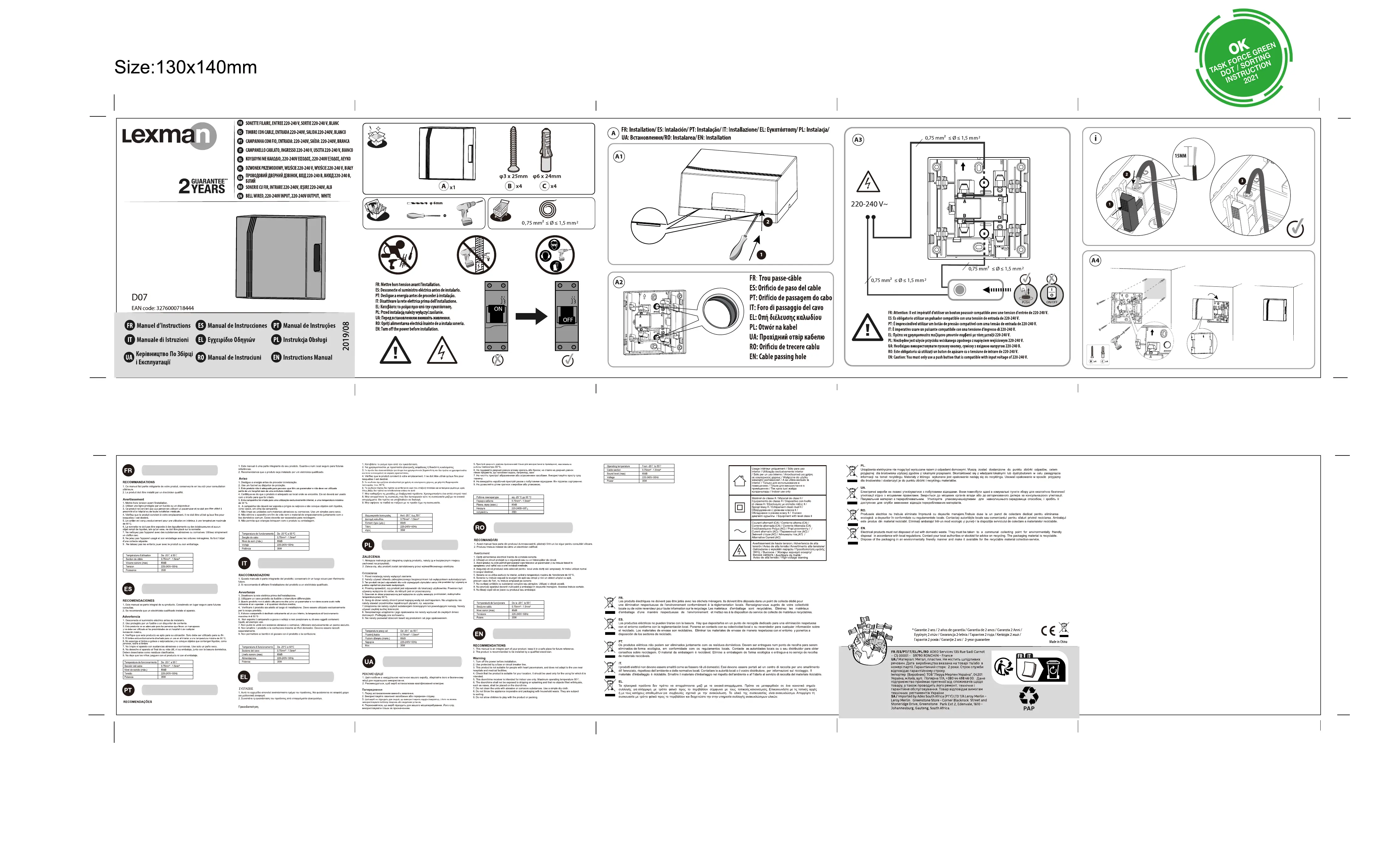 D07 - Carillon de porte LEXMAN - Notice d'utilisation et mode d'emploi gratuit