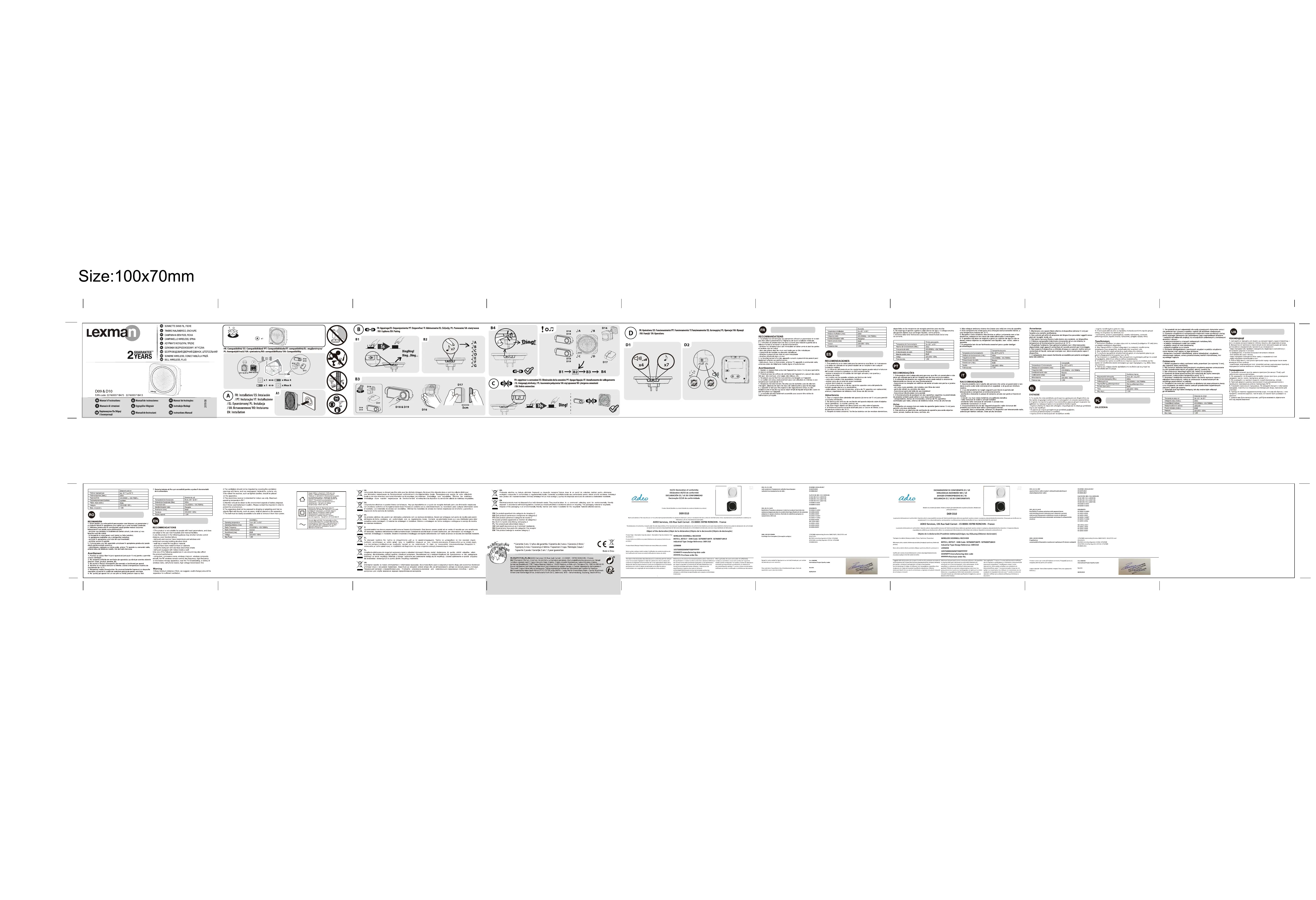 Téléchargez la notice de votre Carillon sans fil au format PDF gratuitement ! Retrouvez votre notice D09 - LEXMAN et reprennez votre appareil électronique en main. Sur cette page sont publiés tous les documents nécessaires à l'utilisation de votre appareil D09 de la marque LEXMAN.