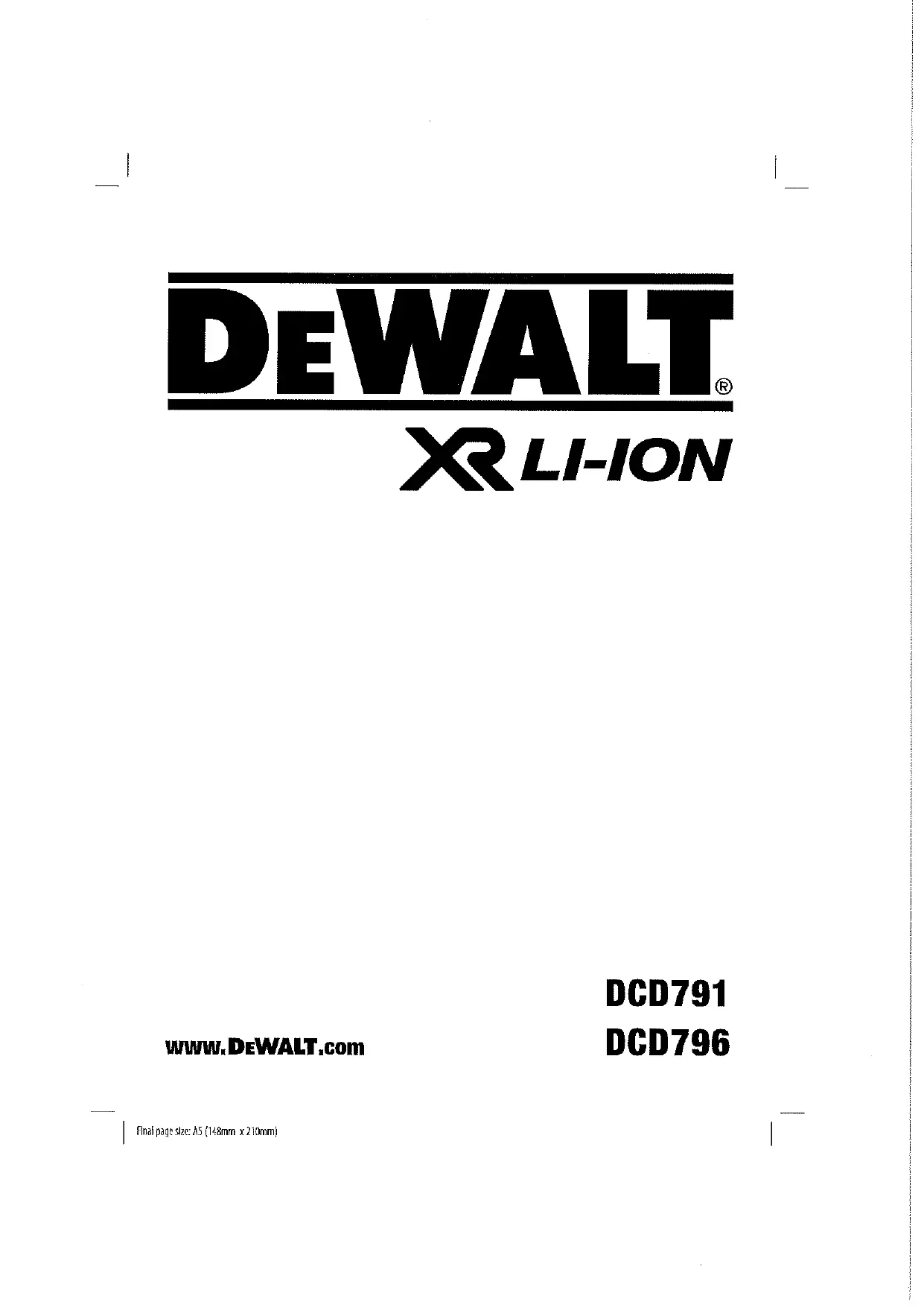 DCK268P2T-QW - DCD791 - DCD796 - Perceuse visseuse sans fil DEWALT - Notice d'utilisation et mode d'emploi gratuit