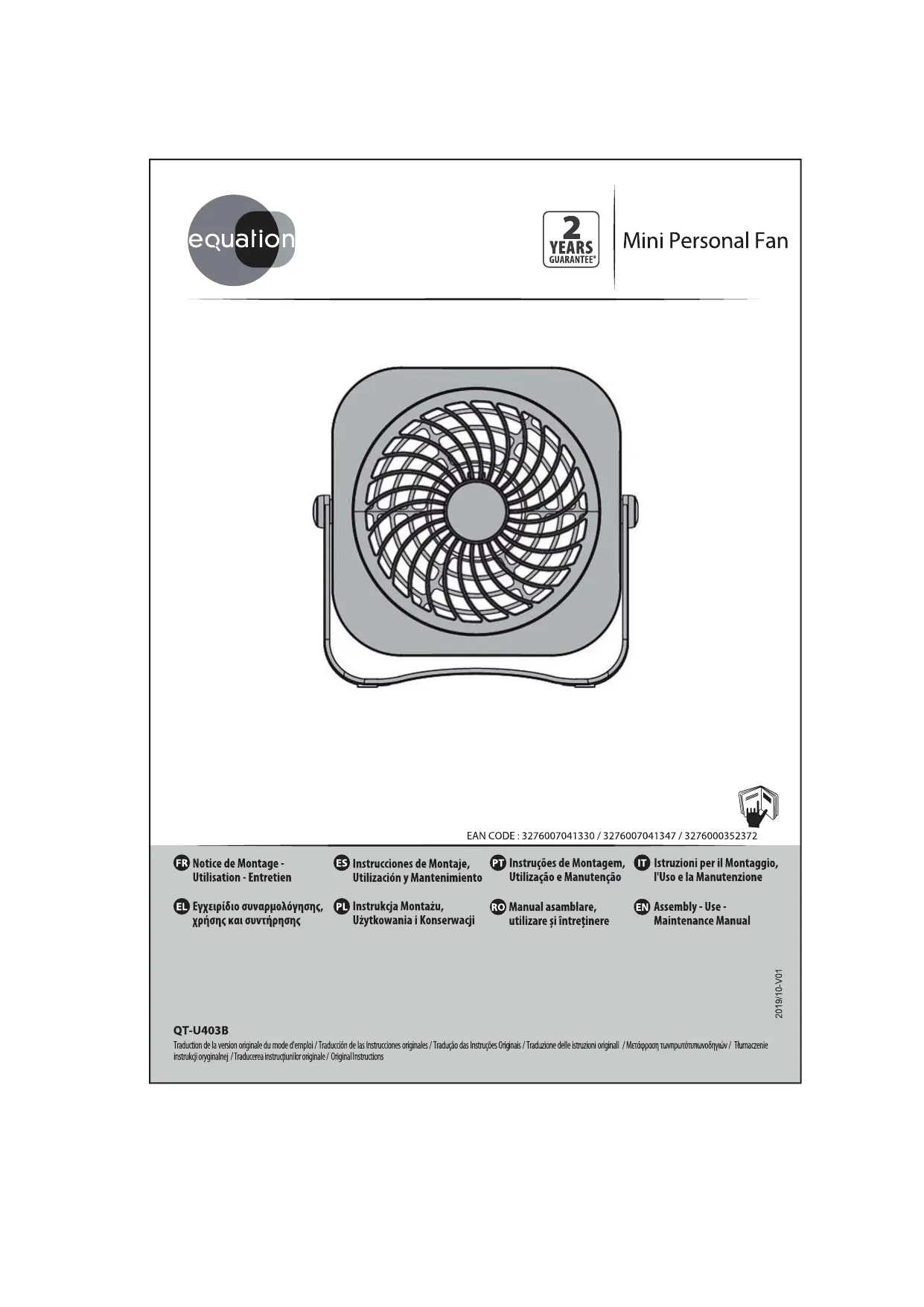 YEA 2 - Ventilateur EQUATION - Notice d'utilisation et mode d'emploi gratuit
