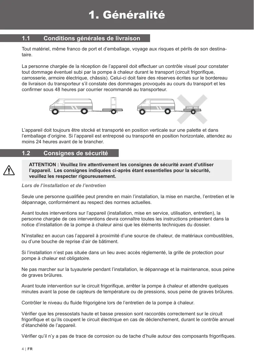 Avant toutes interventions sur l'appareil (installation, mise en service, utilisation, entretien), la personne chargée de ces interventions devra connaître toutes les instructions présentent dans la notice d'installation de la pompe à chaleur ainsi que les éléments techniques du dossier.