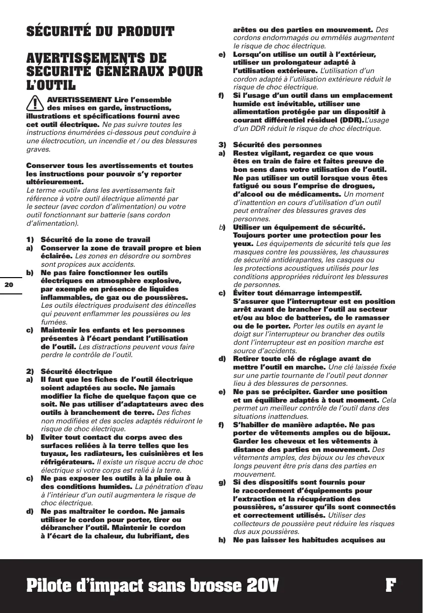 AVERTISSEMENT DE SÉCURITÉ CONCERNANT LA VISSEUSE À PERCUSSION