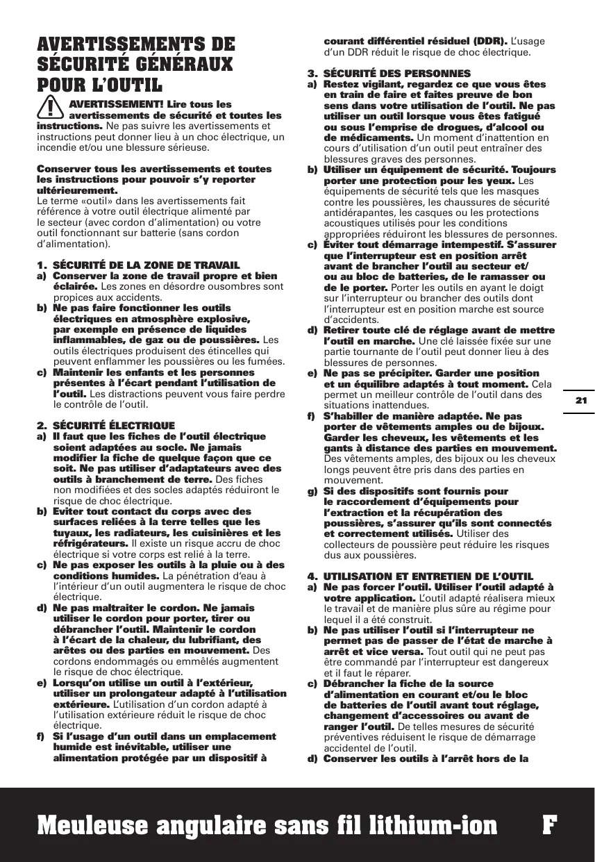 S. UTILISATION DES OUTILS FONCTIONNANT SUR BATTERIES ET PRÉCAUTI D'EMPLOI