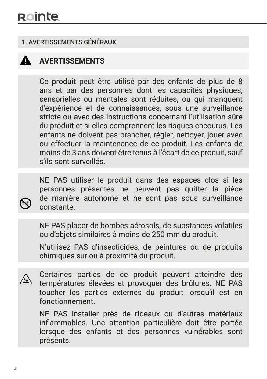 2.9. ROINTE, ses bureaux, ses employés, ses distributeurs et ses installateurs ne sont pas responsables des dommages accidentels résultant de la violation de toute règle