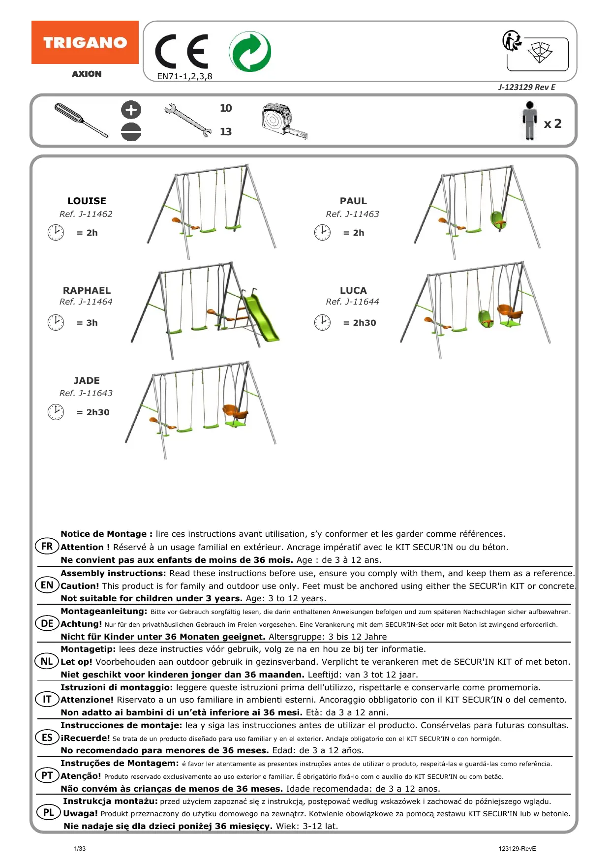 RAPHAëL - LOUISE - PAUL - LUCA - JADE - Portique TRIGANO - Notice d'utilisation et mode d'emploi gratuit