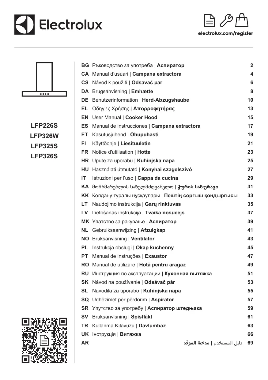 LFP226S LFP326W LFP325S LFP326S - Hotte tiroir ELECTROLUX - Notice d'utilisation et mode d'emploi gratuit