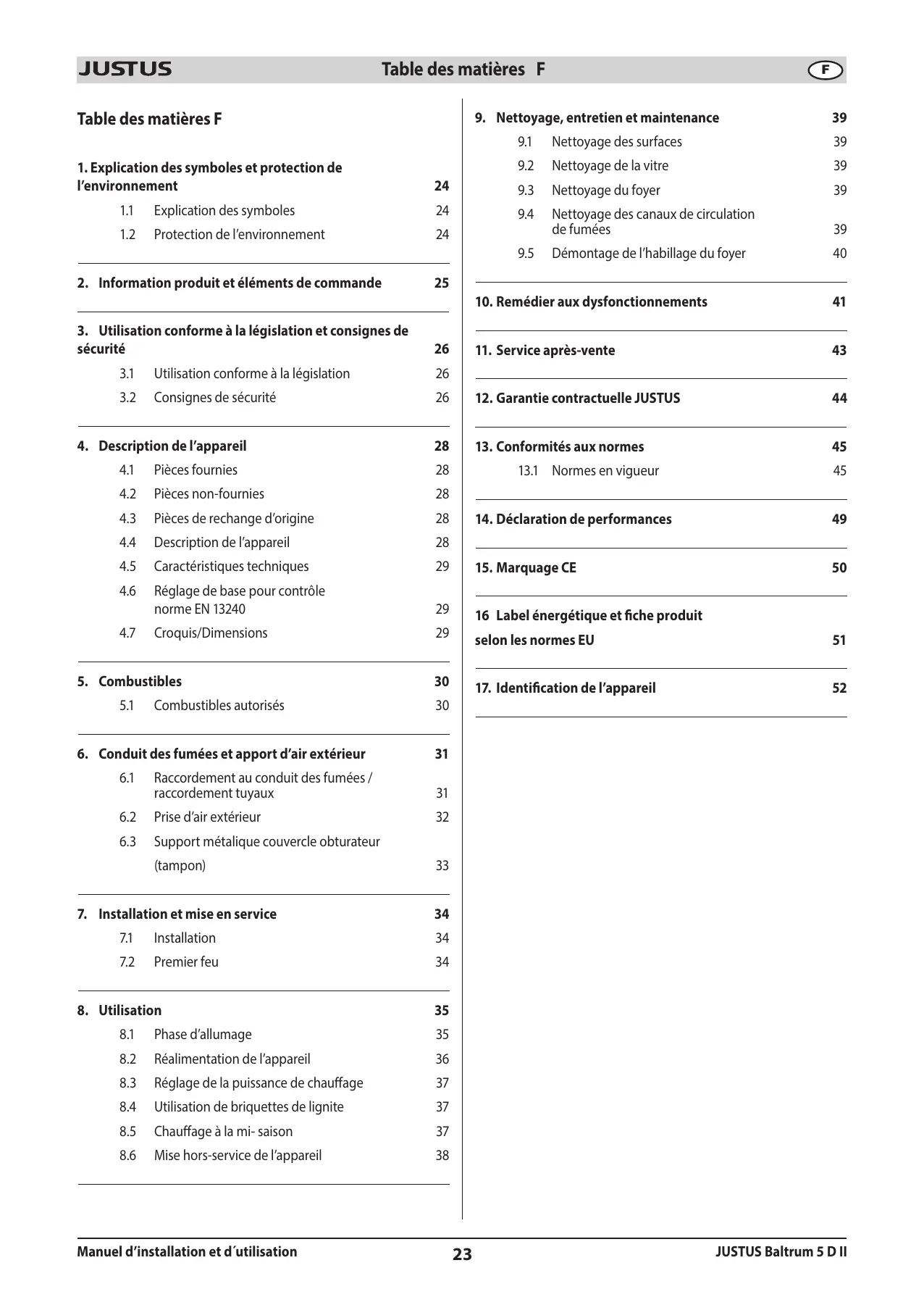 Manuel d'installation et d'utilisation 25 JUSTUS Baltrum 5 D'II JUSTUS