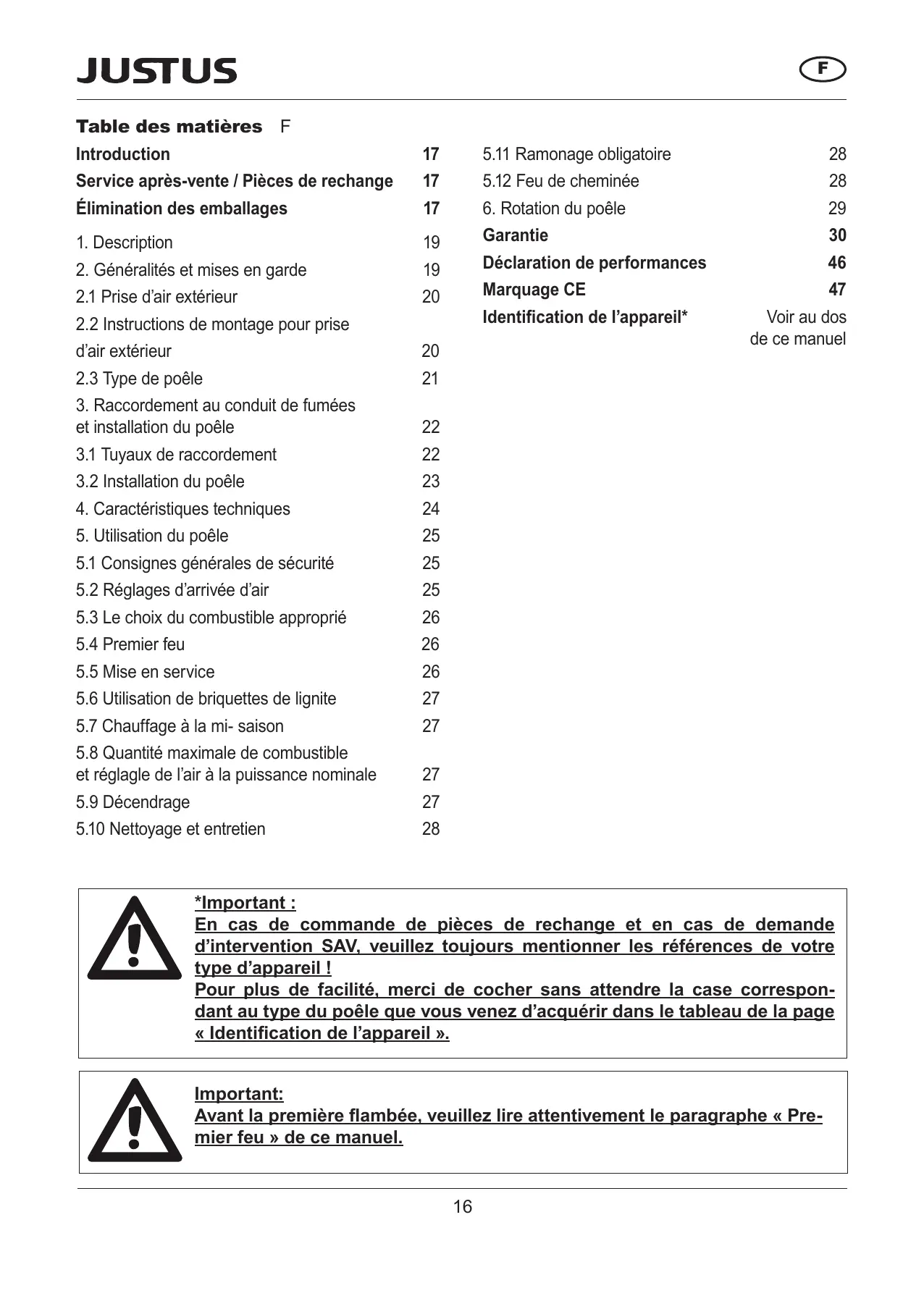 Seeland I - Poêle à bois JUSTUS - Notice d'utilisation et mode d'emploi gratuit