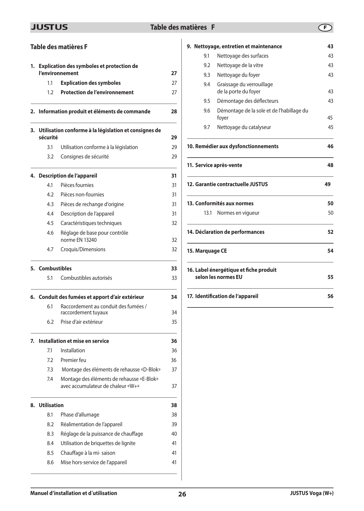 Voga (W+) - Poêle à bois JUSTUS - Notice d'utilisation et mode d'emploi gratuit