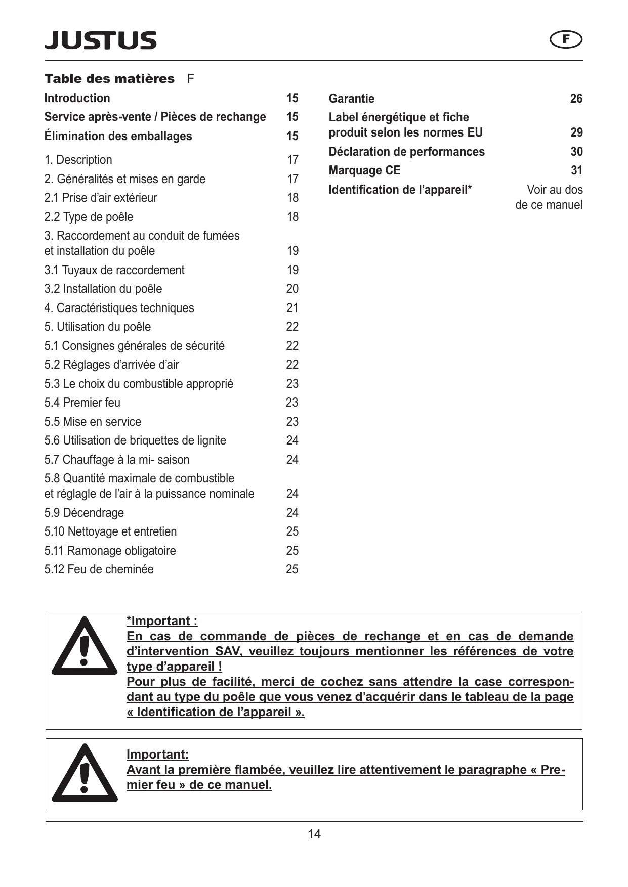 Téléchargez la notice de votre Poêle à bois au format PDF gratuitement ! Retrouvez votre notice USEDOM 7 I - JUSTUS et reprennez votre appareil électronique en main. Sur cette page sont publiés tous les documents nécessaires à l'utilisation de votre appareil USEDOM 7 I de la marque JUSTUS.