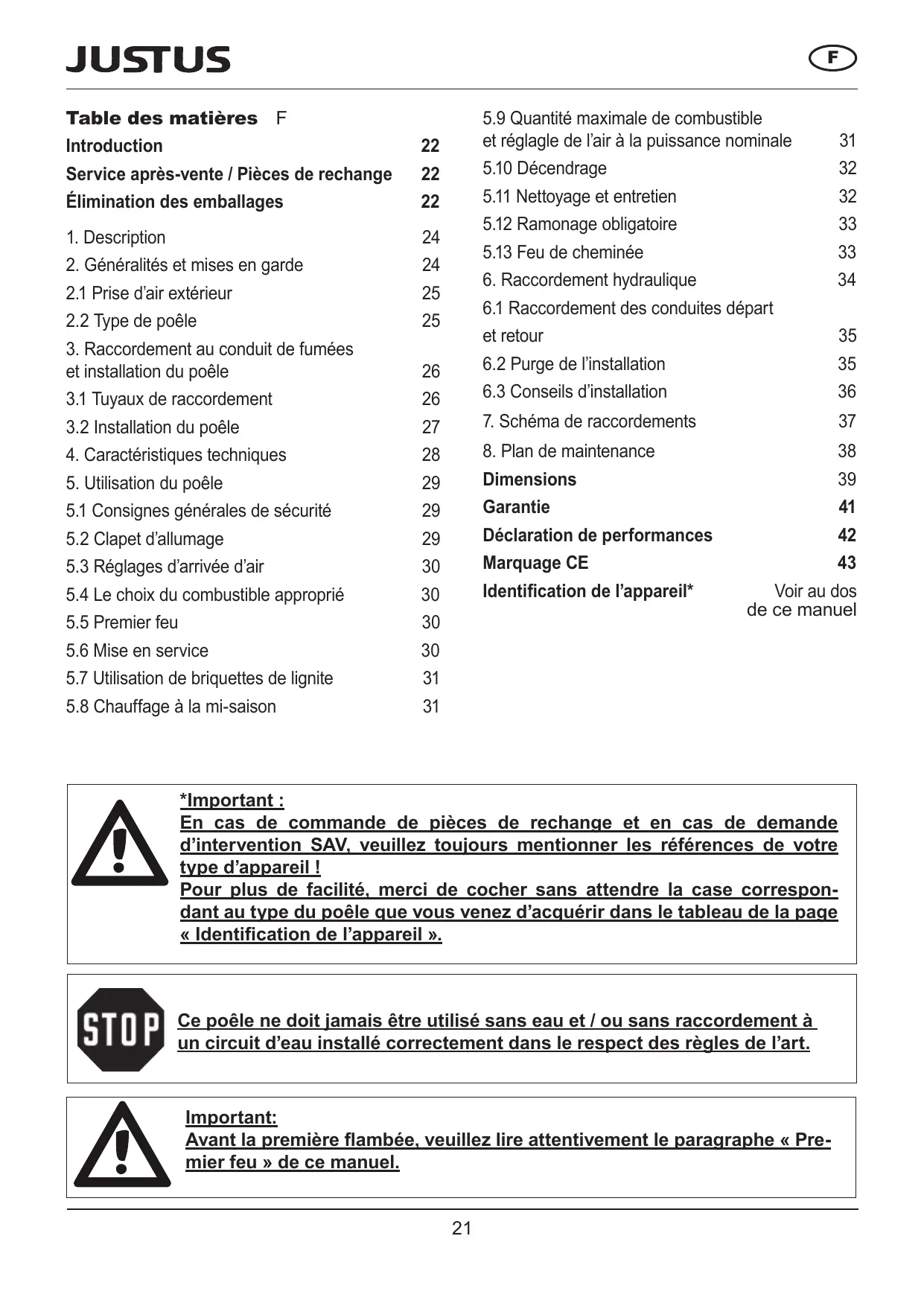 Island Aqua II - Poêle à bois JUSTUS - Notice d'utilisation et mode d'emploi gratuit