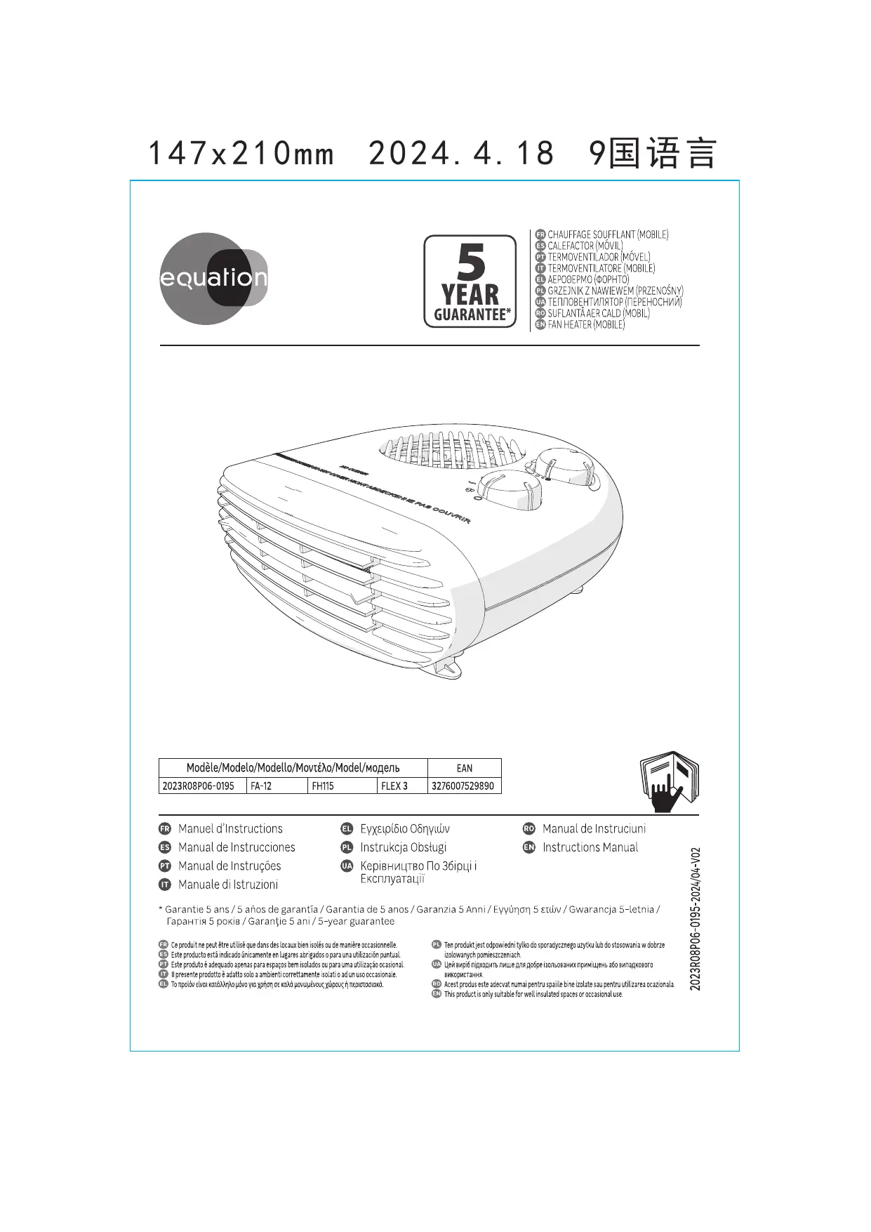 FLEX, FA-12 - Radiateur soufflant électrique EQUATION - Notice d'utilisation et mode d'emploi gratuit
