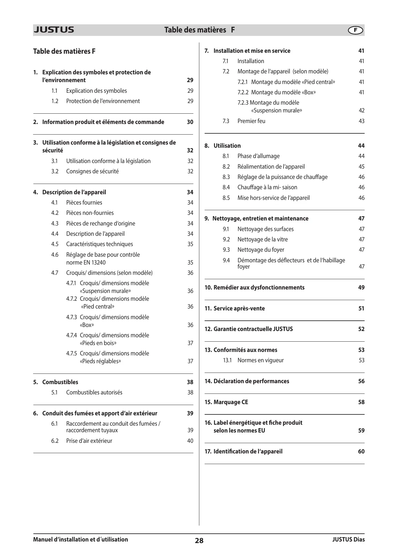 DIAS - Poêle à bois JUSTUS - Notice d'utilisation et mode d'emploi gratuit