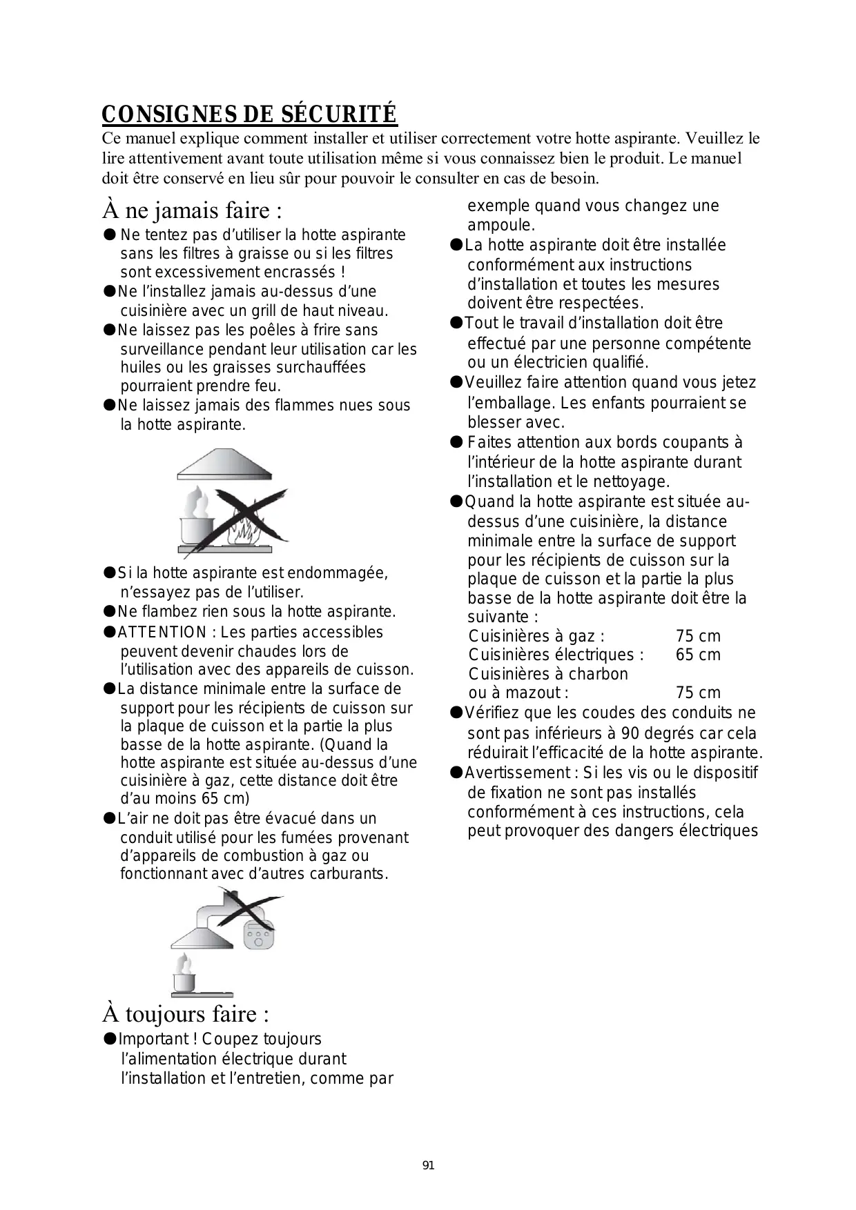 @La hotte aspirante est réservée à un usage domestique.