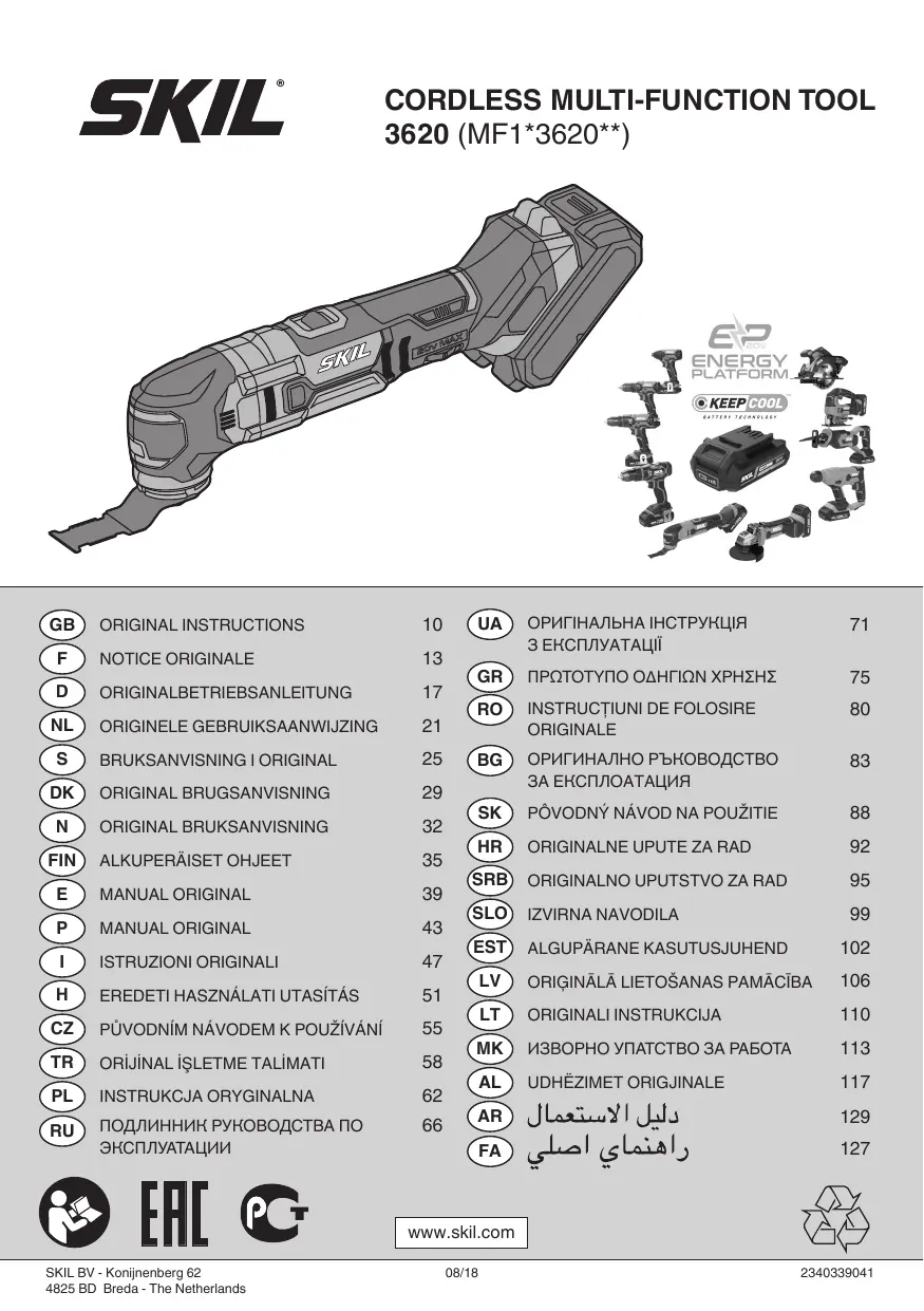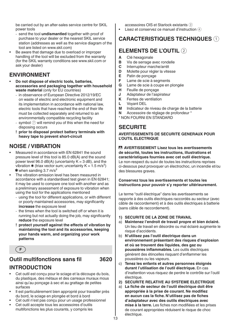 MF1E3620AA - 3620 (MF1*3620**) - Outil multifonction sans fil SKIL - Notice d'utilisation et mode d'emploi gratuit
