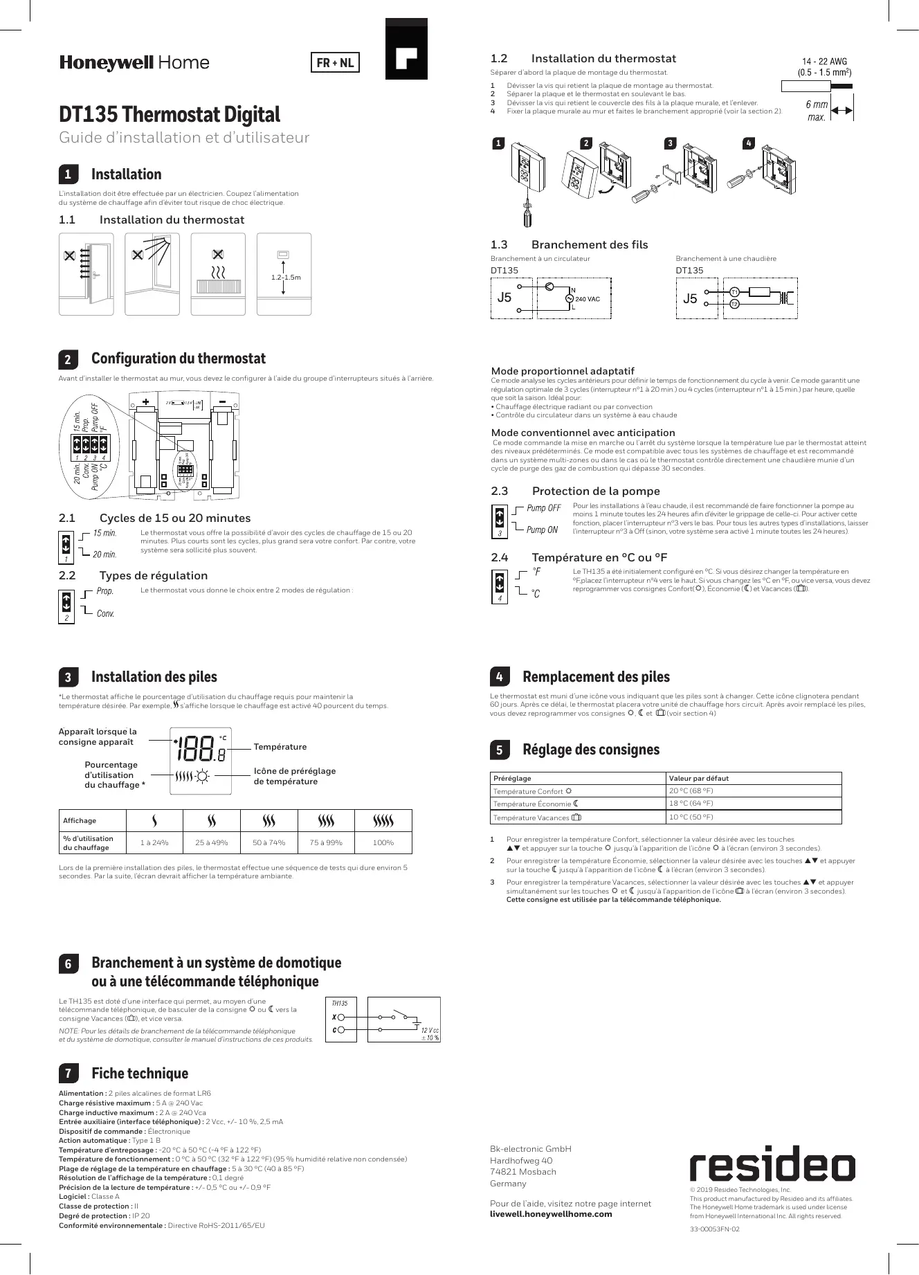 Retrouvez gratuitement la notice de l'appareil DT135 HONEYWELL HOME au format PDF.