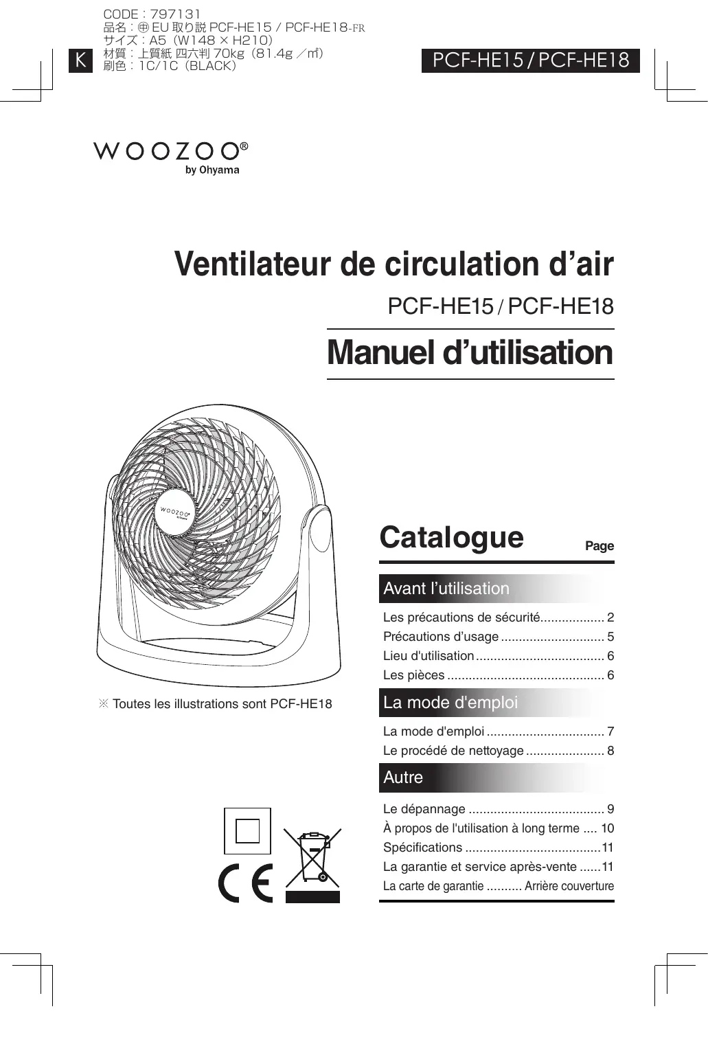 PCF-HE15/PCF-HE18 - Ventilateur WOOZOO - Notice d'utilisation et mode d'emploi gratuit