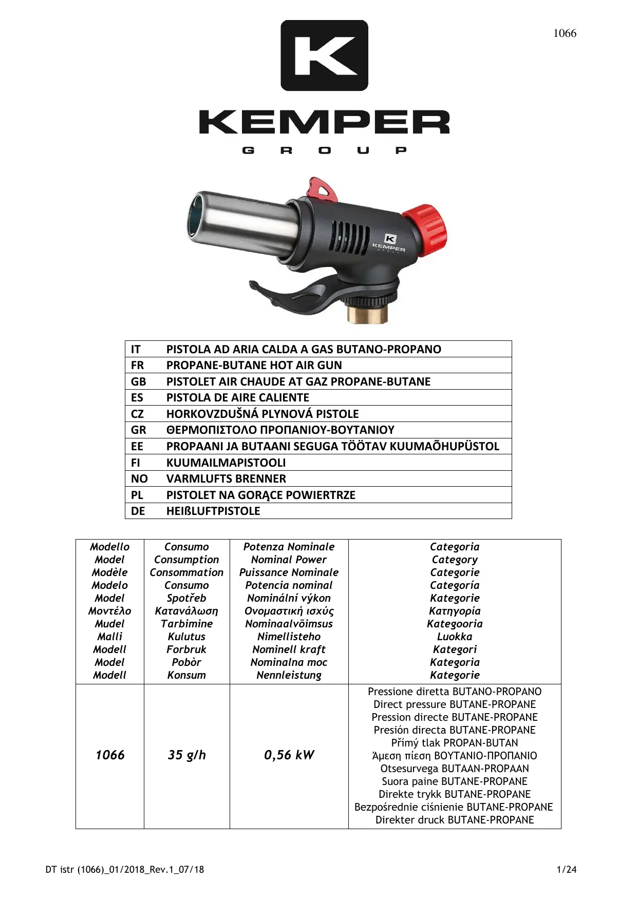 1066 - Pistolet à air chaud KEMPER - Notice d'utilisation et mode d'emploi gratuit