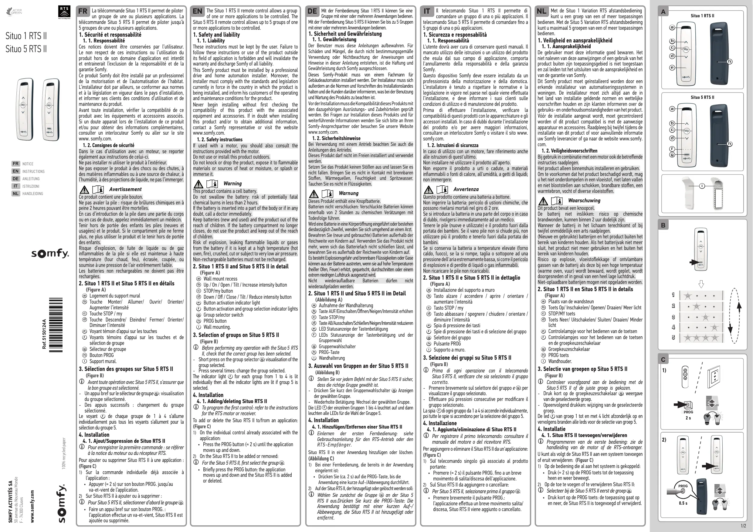 SITUO 5 RTS PURE - Télécommande SOMFY - Notice d'utilisation et mode d'emploi gratuit