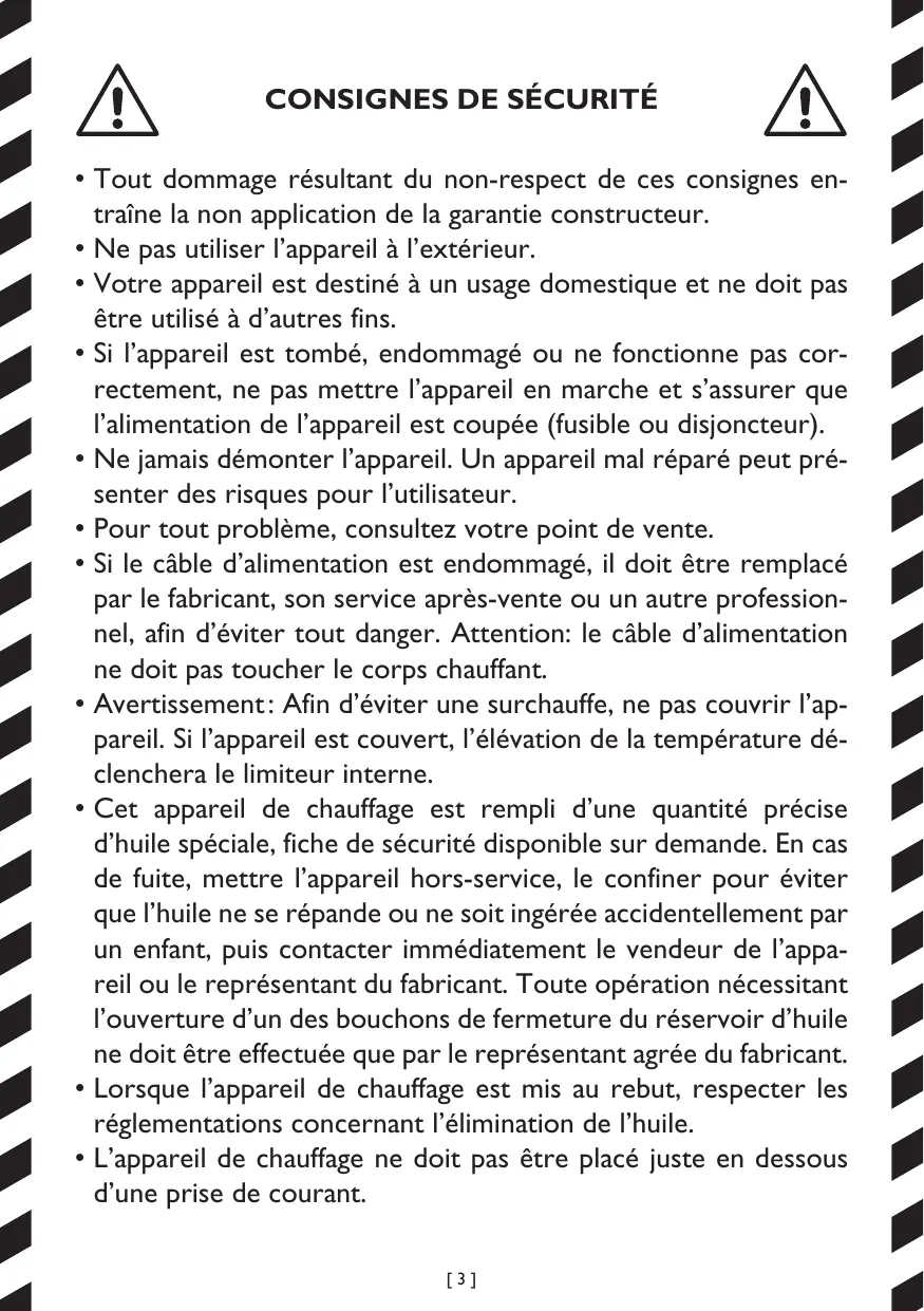 + Ce appareil de chauffage est un appareil de classe Il (double isolation électrique).