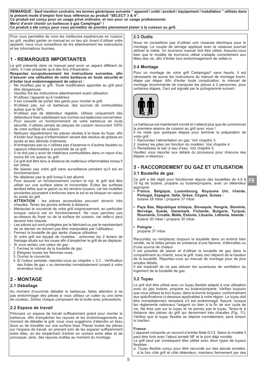 MODE D'EMPLOI SELECT 3 LX PLUS CAMPINGAZ