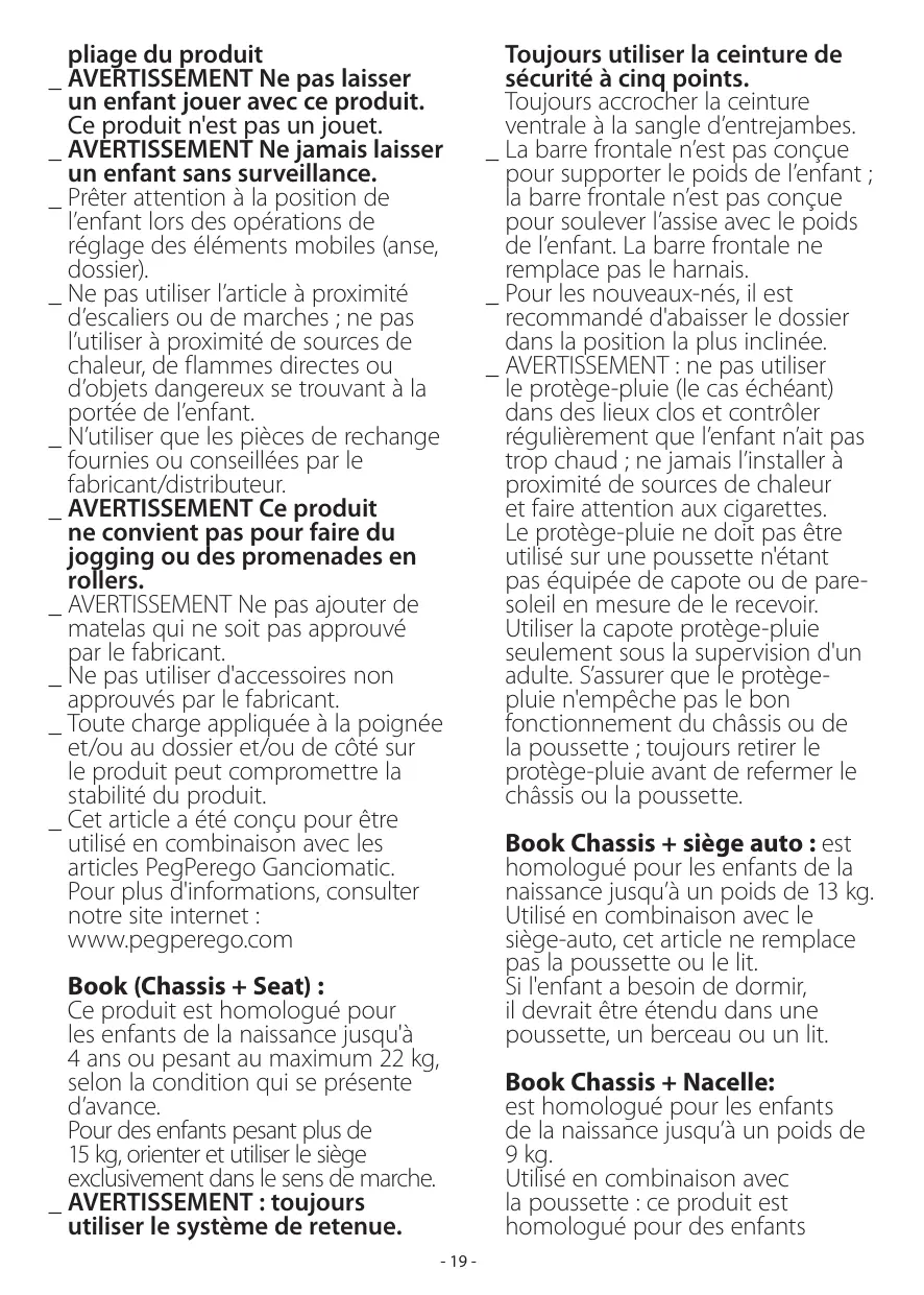 BOOK MODULAR - Poussette trio PEG PEREGO - Notice d'utilisation et mode d'emploi gratuit