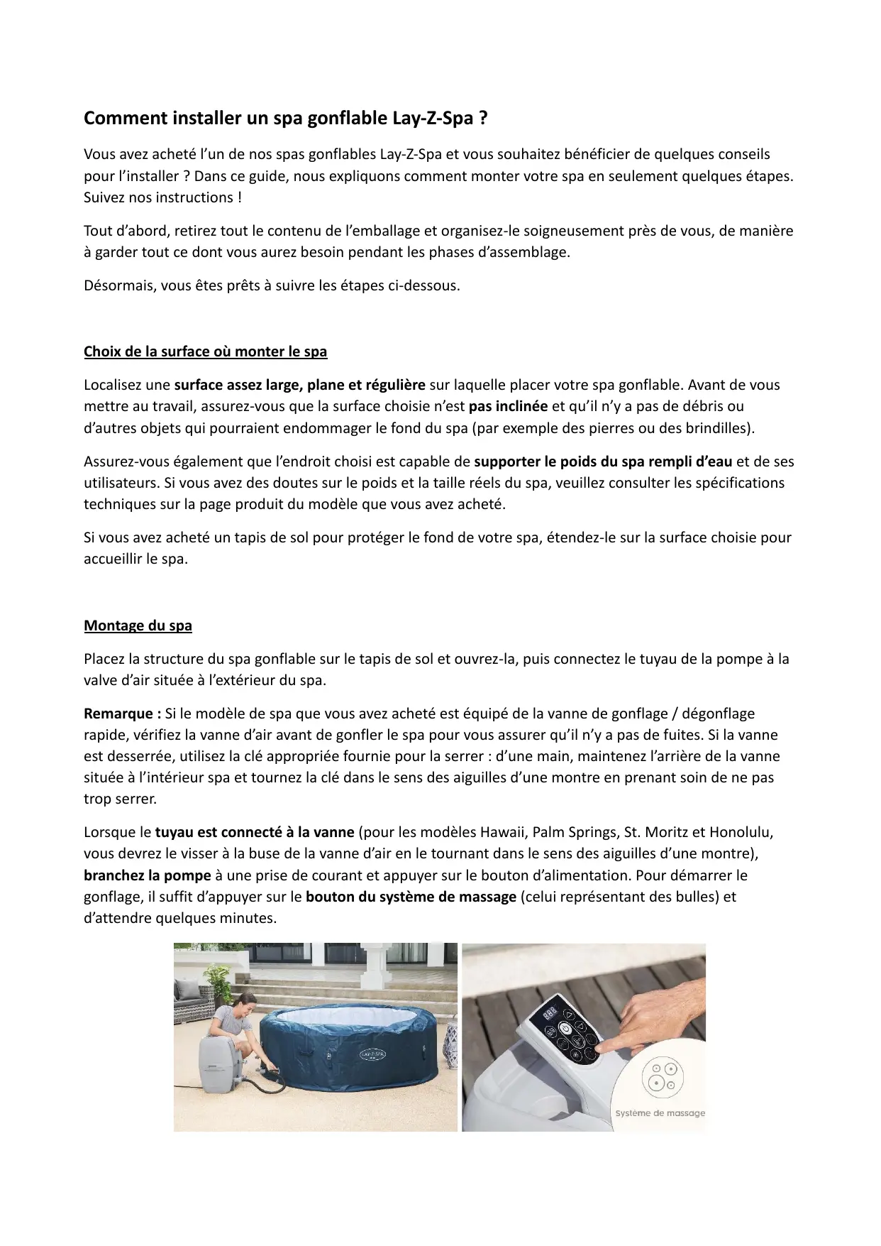 Comment installer un spa gonflable Lay-Z-Spa ?