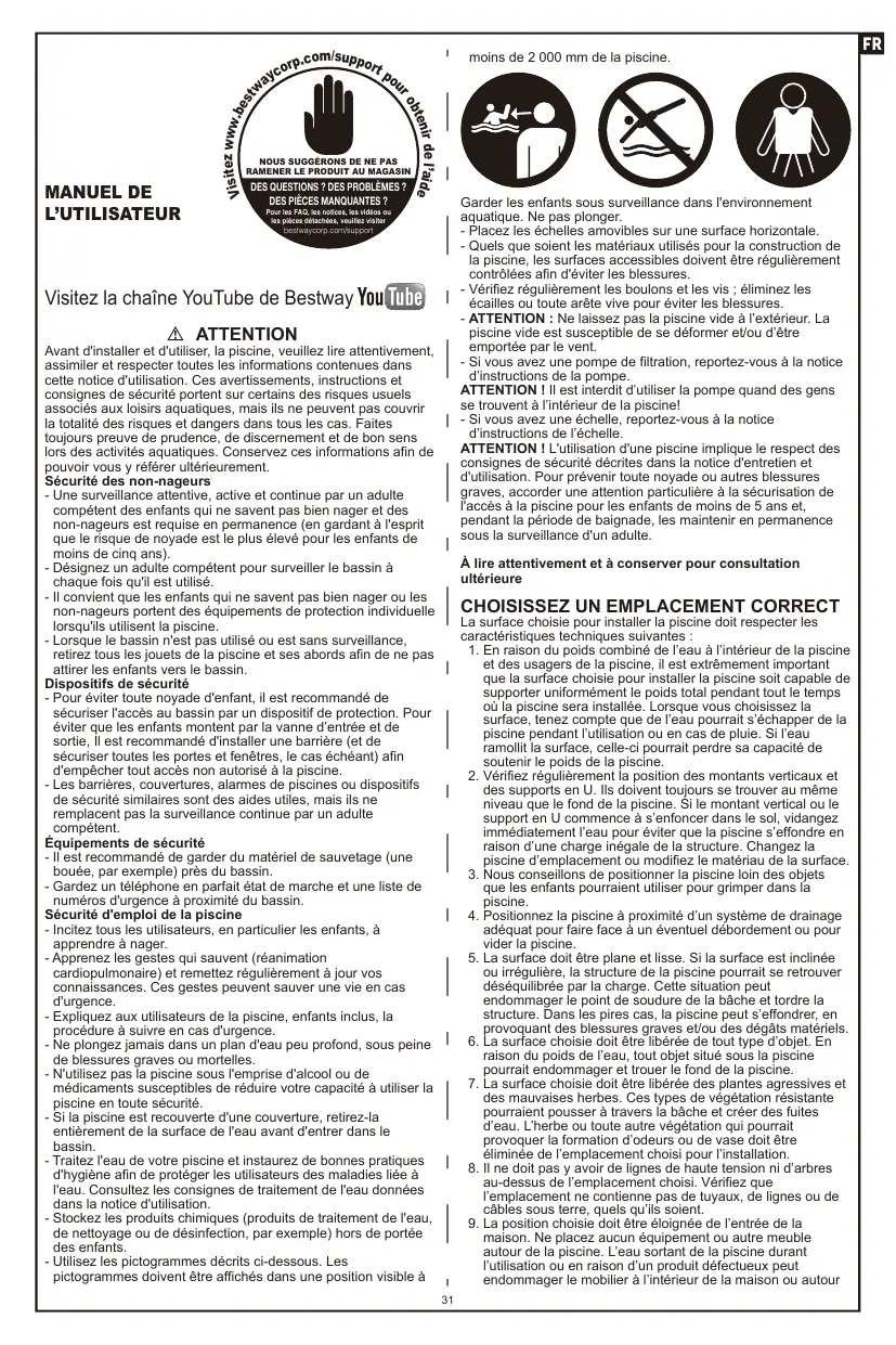 MANUEL DE L'UTILISATEUR Visitez la chaîne YouTube de Bestway You{{LT)