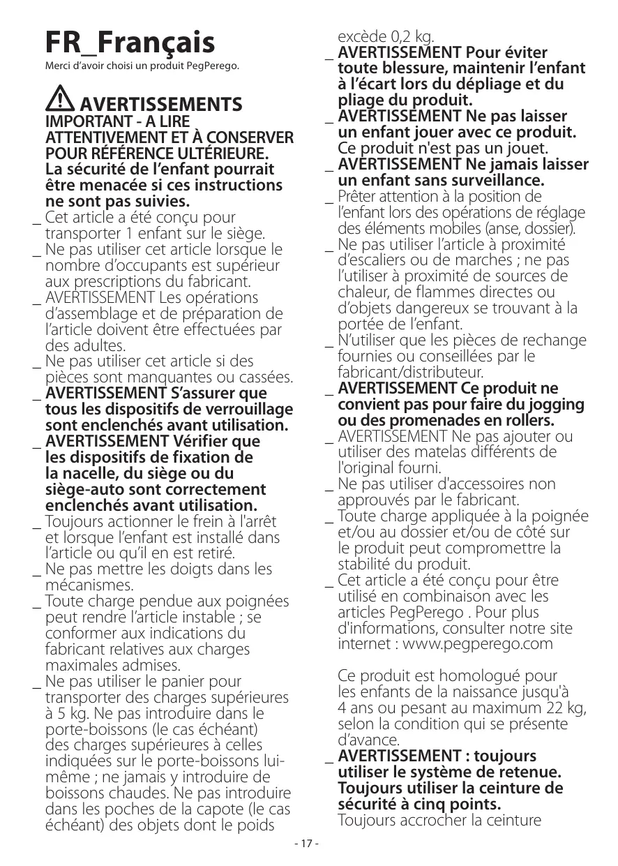 SELFIE PLUS - Poussettes PEG PEREGO - Notice d'utilisation et mode d'emploi gratuit