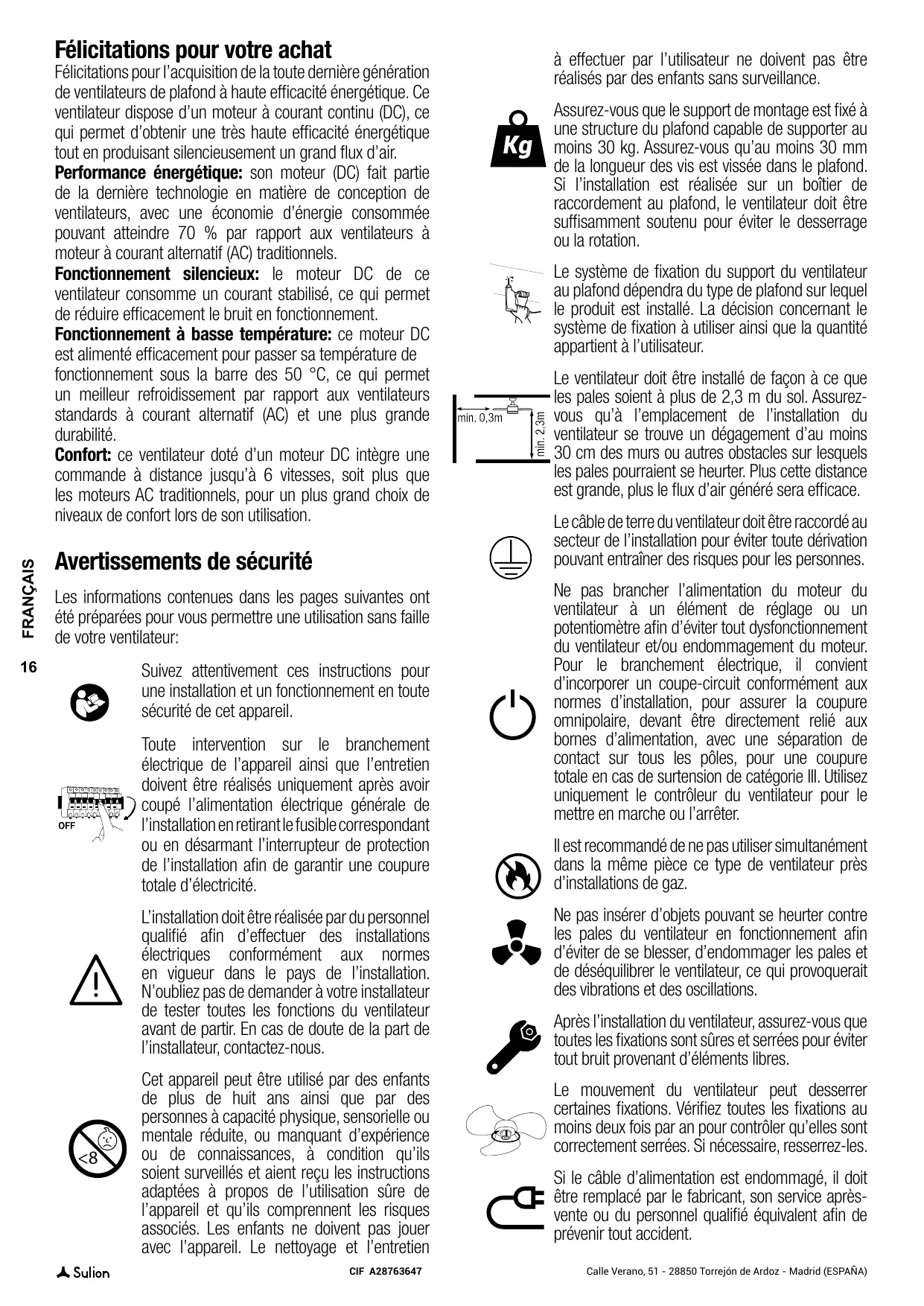 Plus d'informations sur les conditions de garantie sur : https://sulion.es/es/content/12-terminos-y-garantia