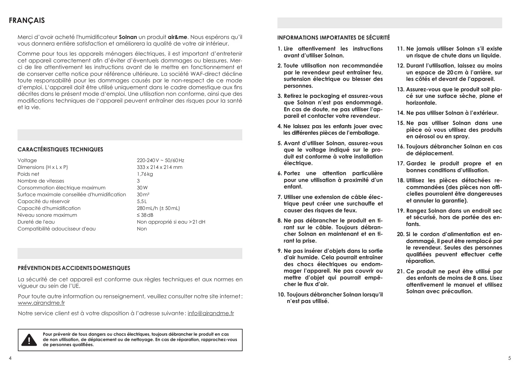 SOLNAN - Humidificateur AIR AND ME - Notice d'utilisation et mode d'emploi gratuit