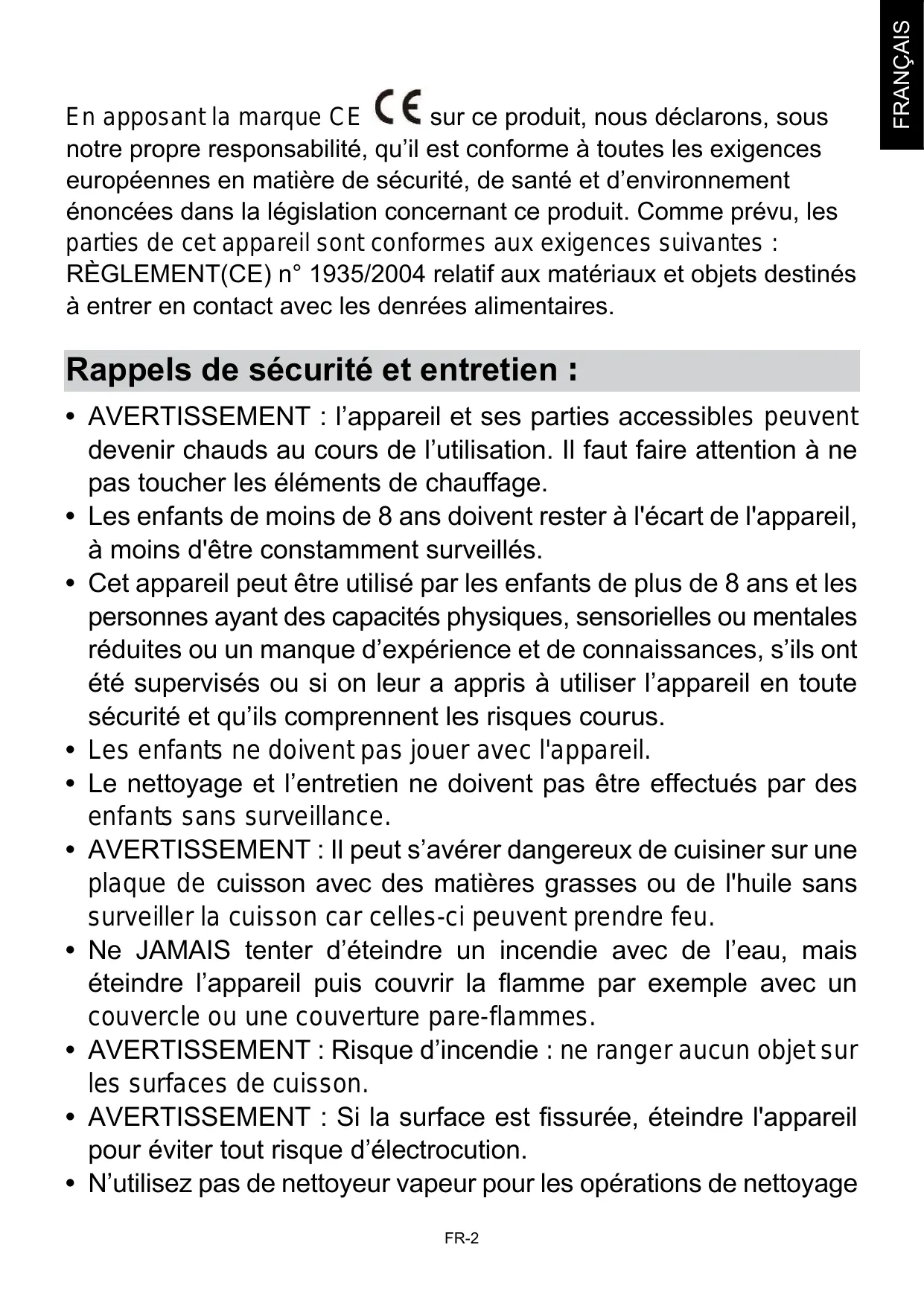 + AVERTISSEMENT : l'appareil et ses parties accessibles peuvent devenir chauds au cours de l’utilisation. Il faut faire attention à ne pas toucher les éléments de chauffage.