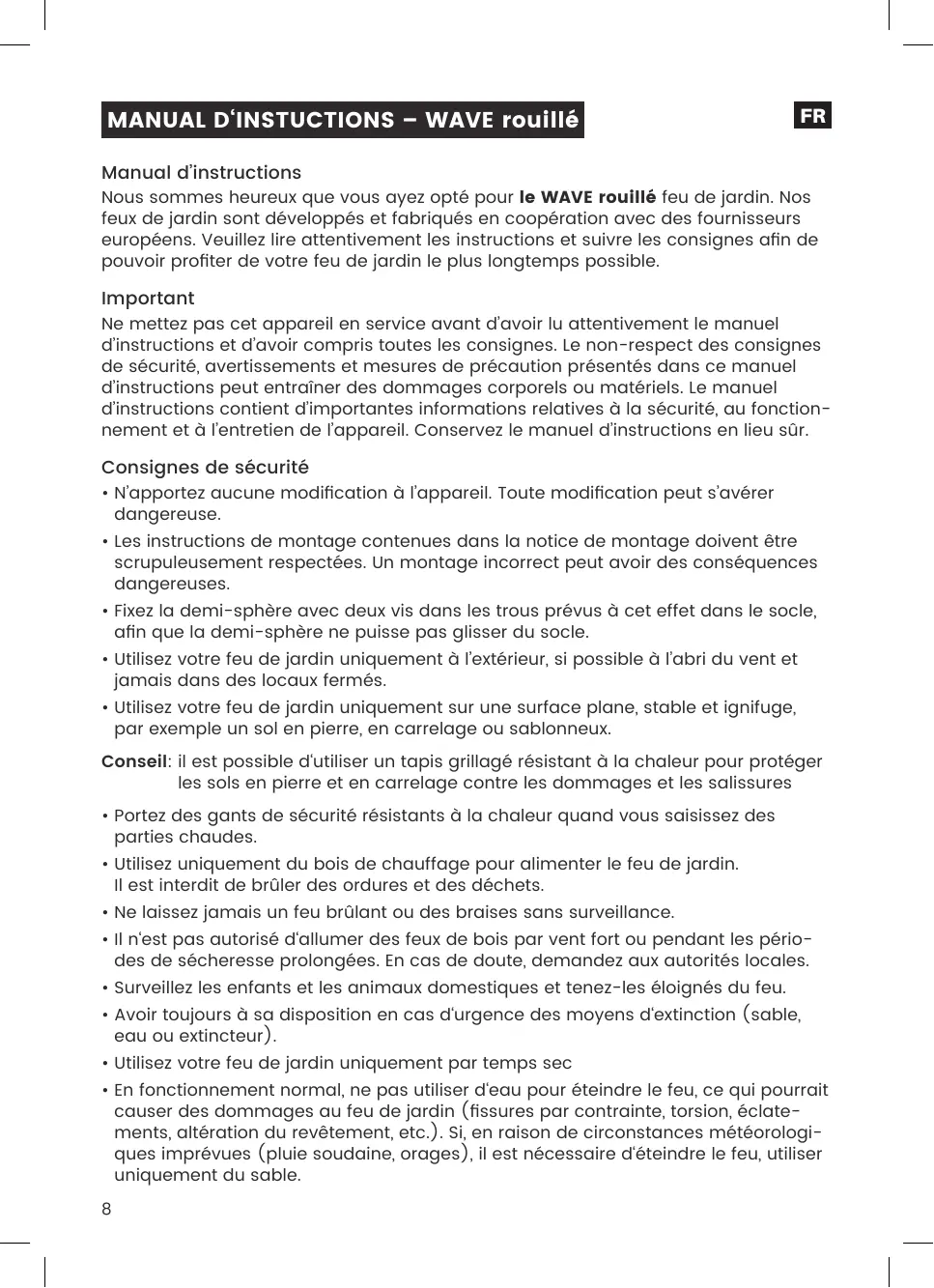 WAVE ROUILLE - Brasero FEU DU JARDIN - Notice d'utilisation et mode d'emploi gratuit