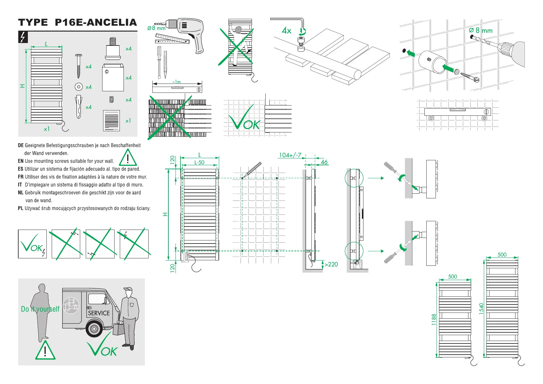 NL Gebruik montageschroeven die geschikt zijn voor de aard van de wand.