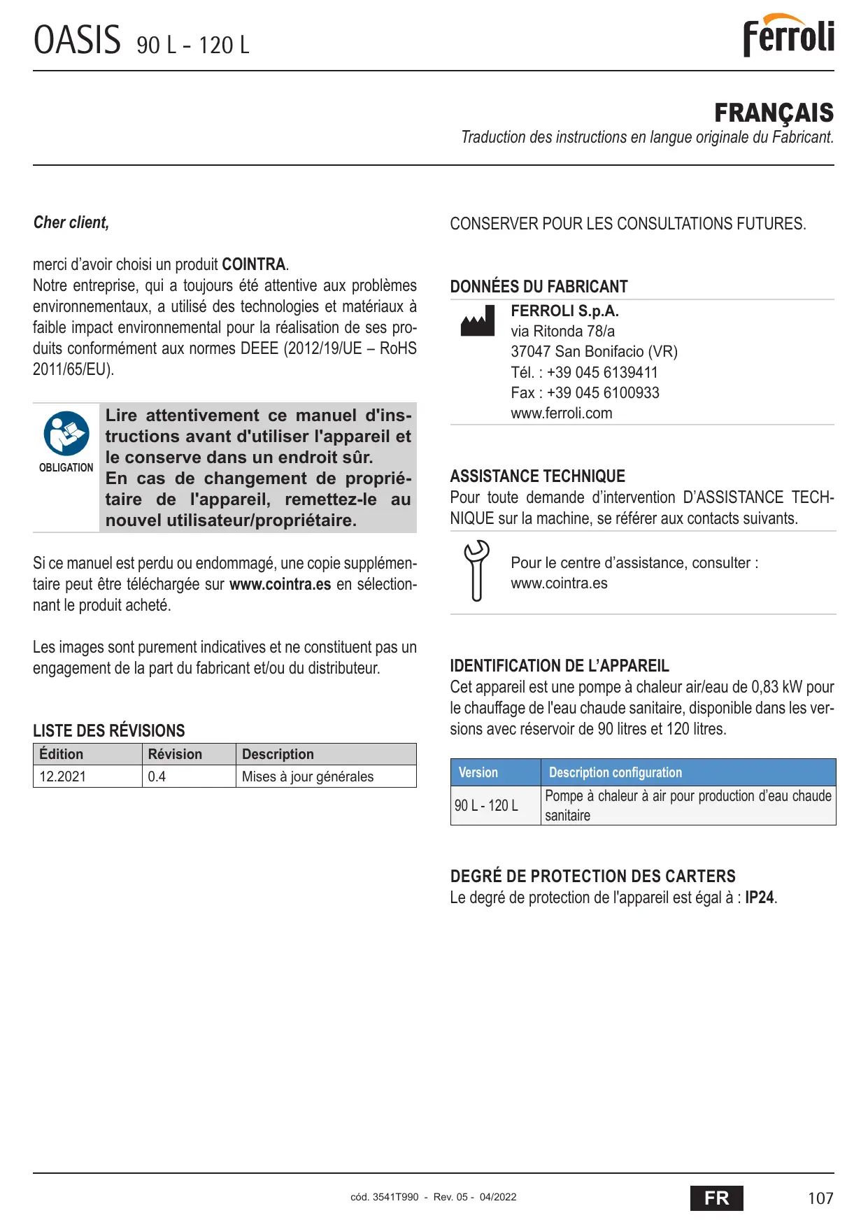 cd. 3541990 - Rev. 05 - 04/2022 | FR |