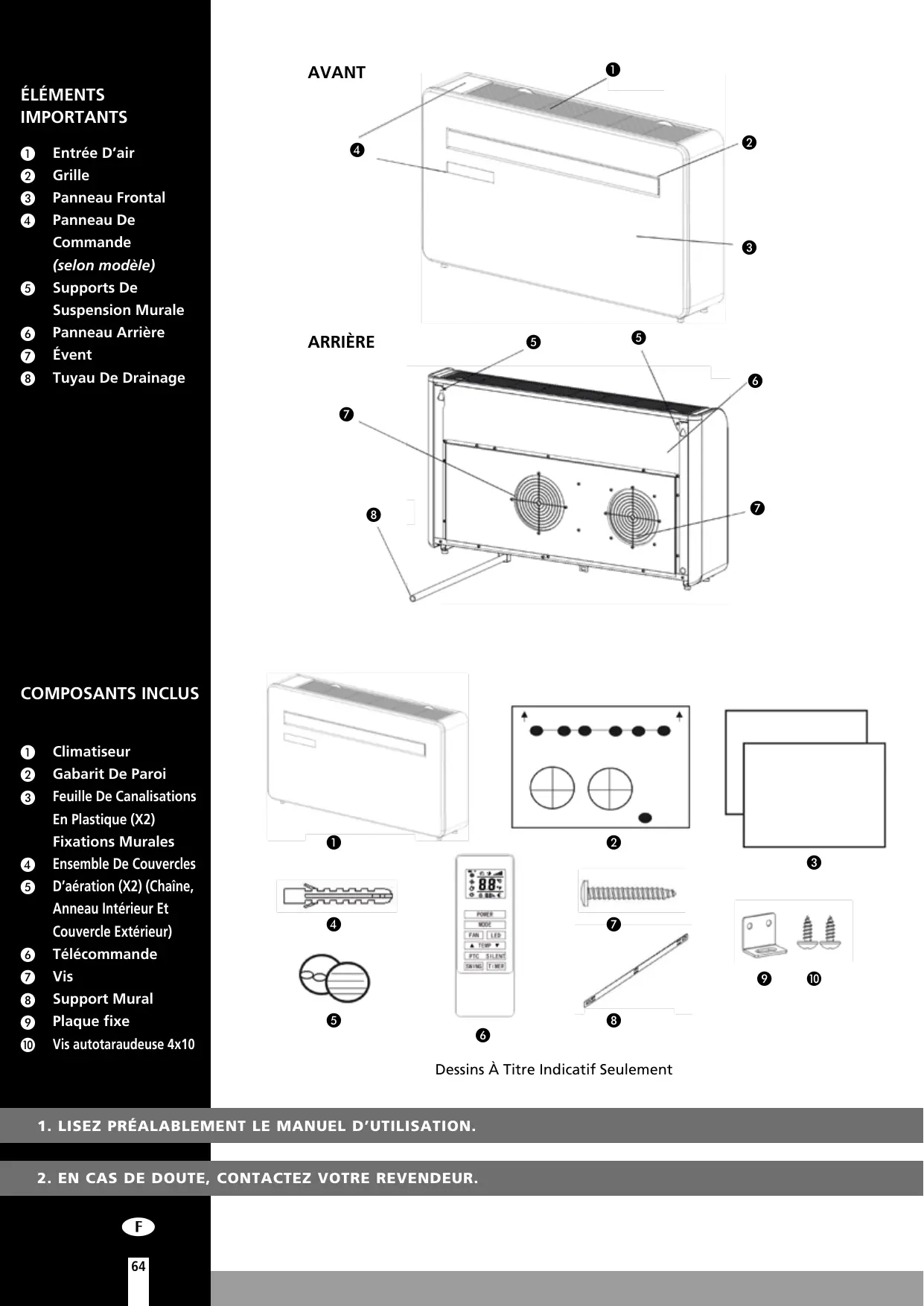 Pour éviter des dépenses inutiles, nous vous conseillons de toujours consulter en premier le mode d'emploi. Si celui-ci ne donne pas de résultat, vous pouvez emmener le climatiseur à réparer chez votre distributeur.