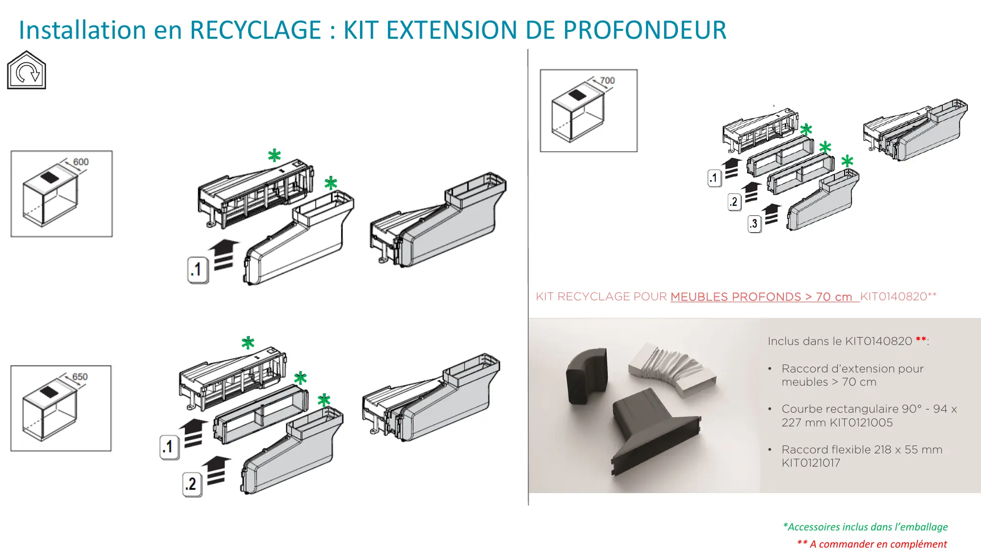 • 2 raccords d'extension pour meuble > 60 et > 65