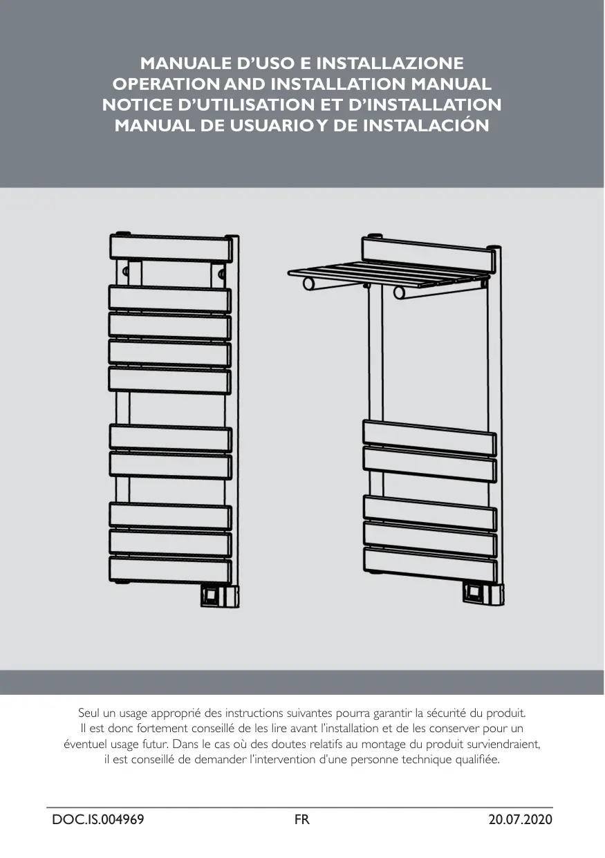 MANUALE D’USO E INSTALLAZIONE OPERATION AND INSTALLATION MANUAL NOTICE D'UTILISATION ET D’INSTALLATION MANUAL DE USUARIO Y DE INSTALACION Seul un usage approprié des instructions suivantes pourra garantir la sécurité du produit. Îl est donc fortement conseillé de les lire avant l'installation et de les conserver pour un éventuel usage futur. Dans le cas où des doutes relatifs au montage du produit surviendraient, il est conseillé de demander l'intervention d'une personne technique qualifiée.