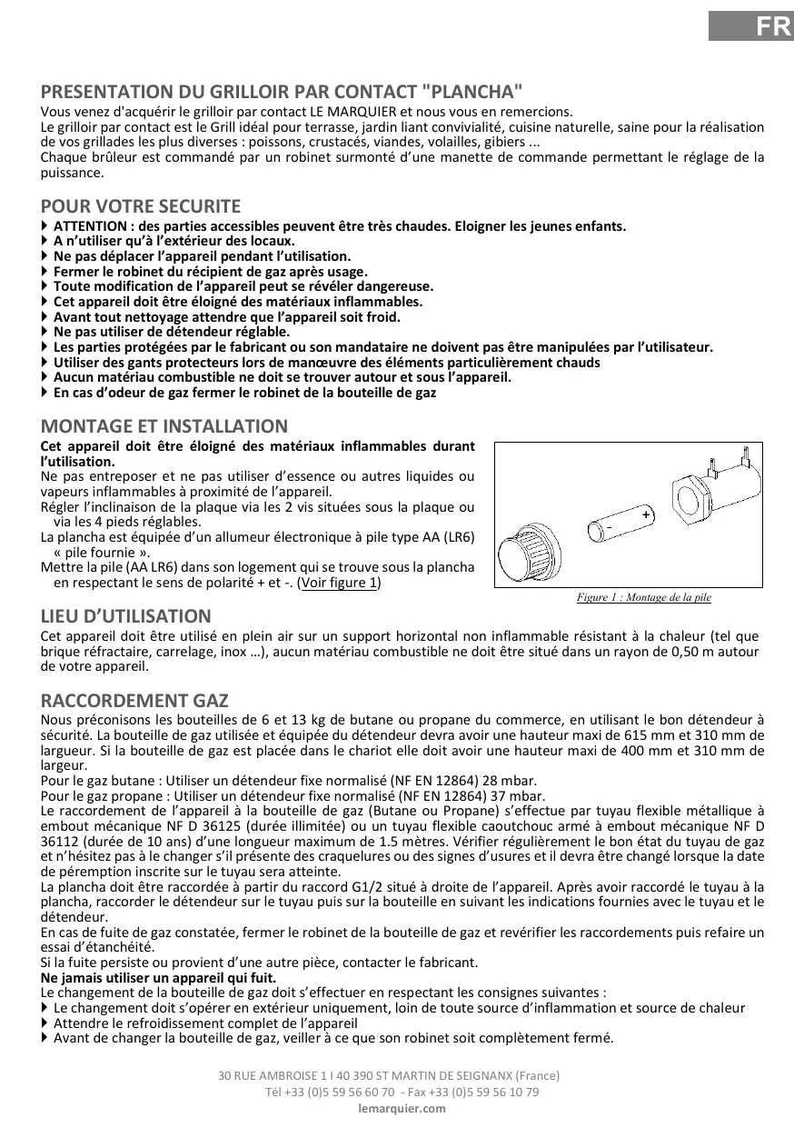 PURE 375 - Plancha LE MARQUIER - Notice d'utilisation et mode d'emploi gratuit