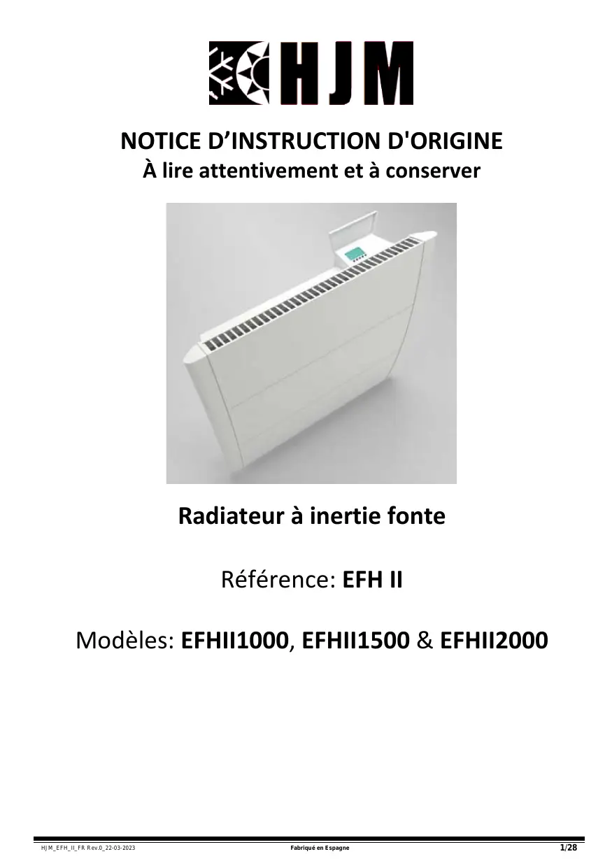 SPRING II - EFHII1000, EFHII1500 & EFHII2000 - Radiateur électrique HJM - Notice d'utilisation et mode d'emploi gratuit