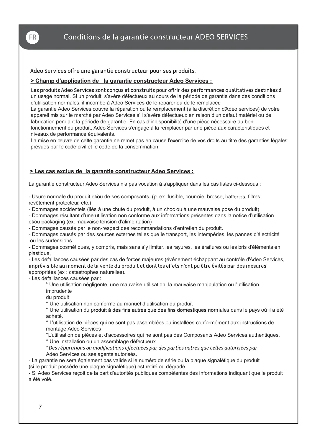 CFr] Conditions de la garantie constructeur ADEO SERVICES