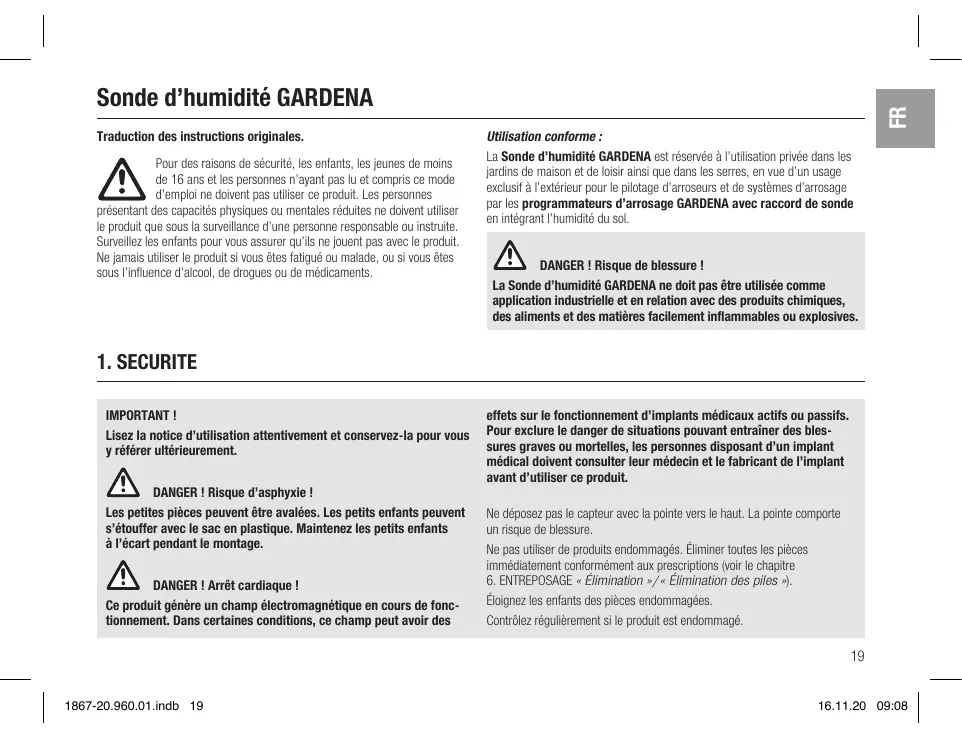 1867 - Capteur d'humidité GARDENA - Notice d'utilisation et mode d'emploi gratuit