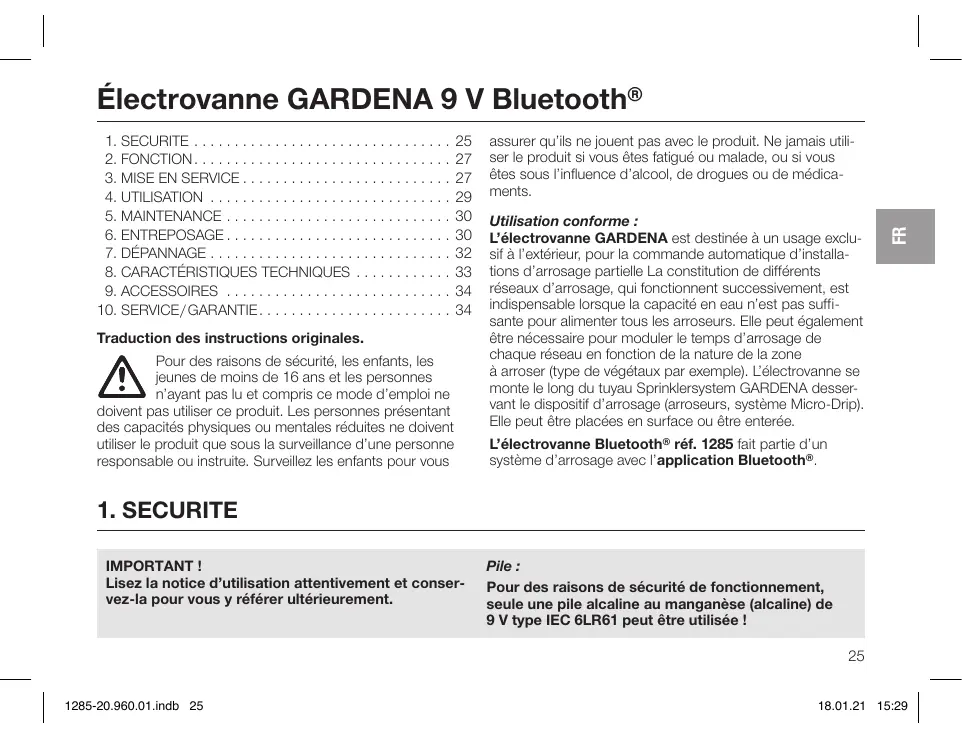 Retrouvez gratuitement la notice de l'appareil 1285 GARDENA au format PDF.