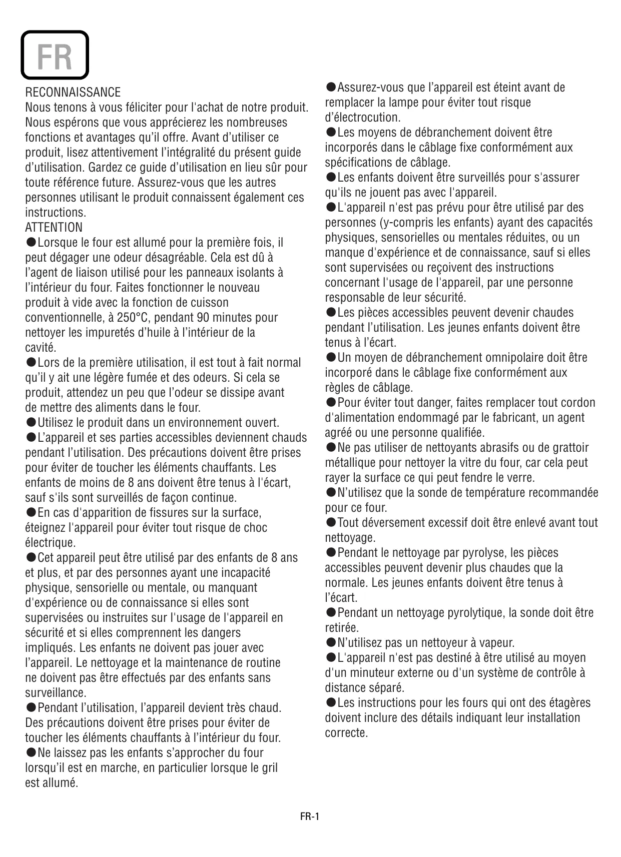 Des précautions doivent être prises pour éviter de toucher les éléments chauffants à l’intérieur du four. @\e laissez pas les enfants s'approcher du four lorsqu'il est en marche, en particulier lorsque le gril