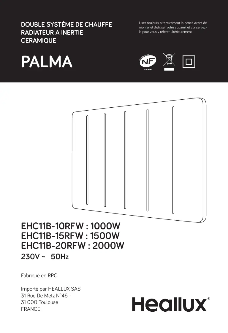 PALMA - EHC11B-10RFW : 1000W EHC11B-15RFW : 1500W EHC11B-20RFW : 2000W - Radiateur électrique HEALLUX - Notice d'utilisation et mode d'emploi gratuit