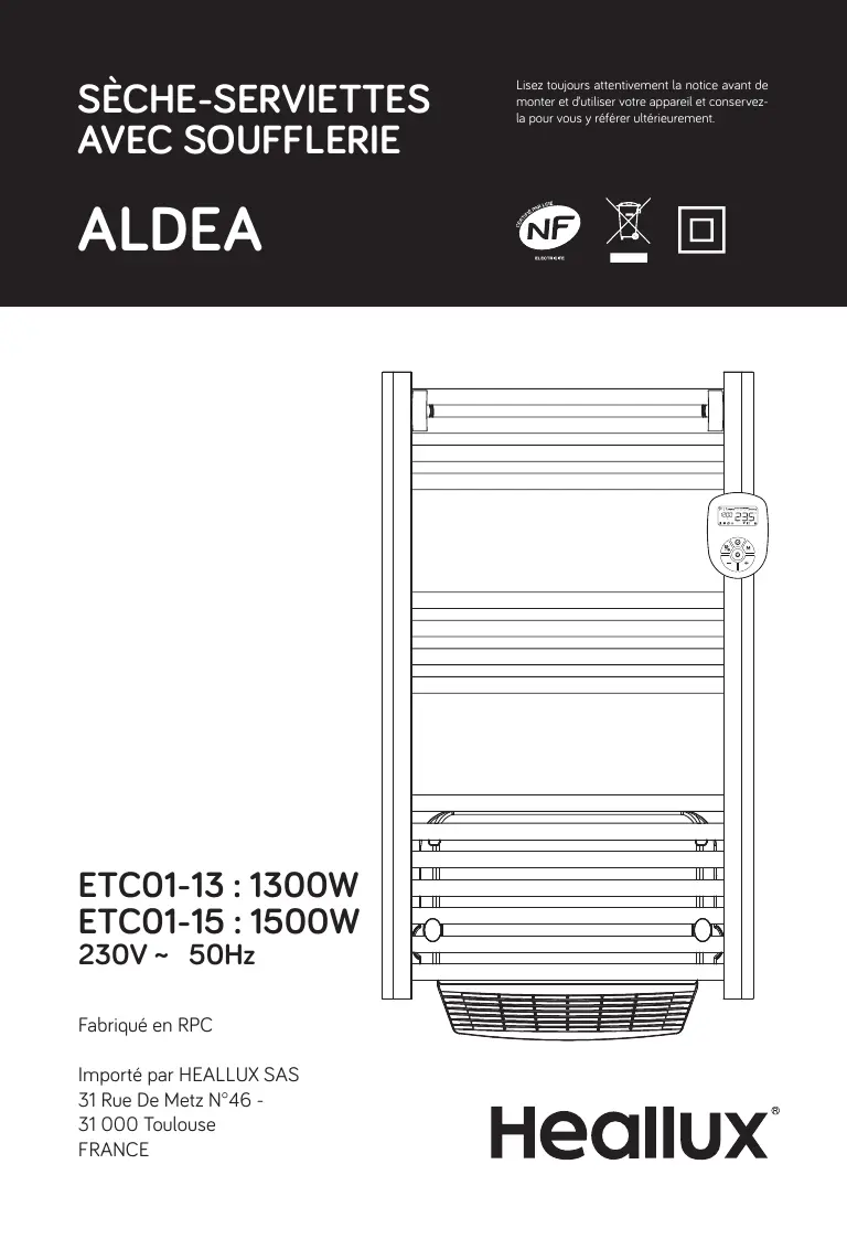 Retrouvez gratuitement la notice de l'appareil ALDEA - ETC01-13 : 1300W ETC01-15 : 1500W HEALLUX au format PDF.