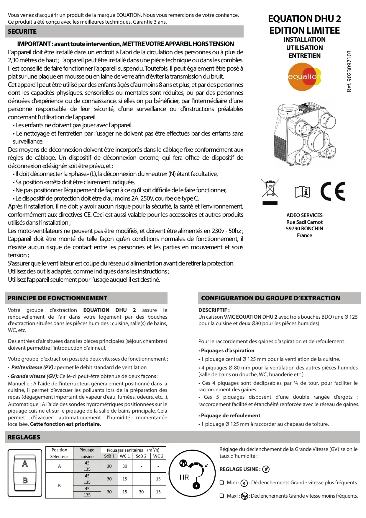 DHU 2 EDITION LIMITE - Kit VMC simple flux EQUATION - Notice d'utilisation et mode d'emploi gratuit