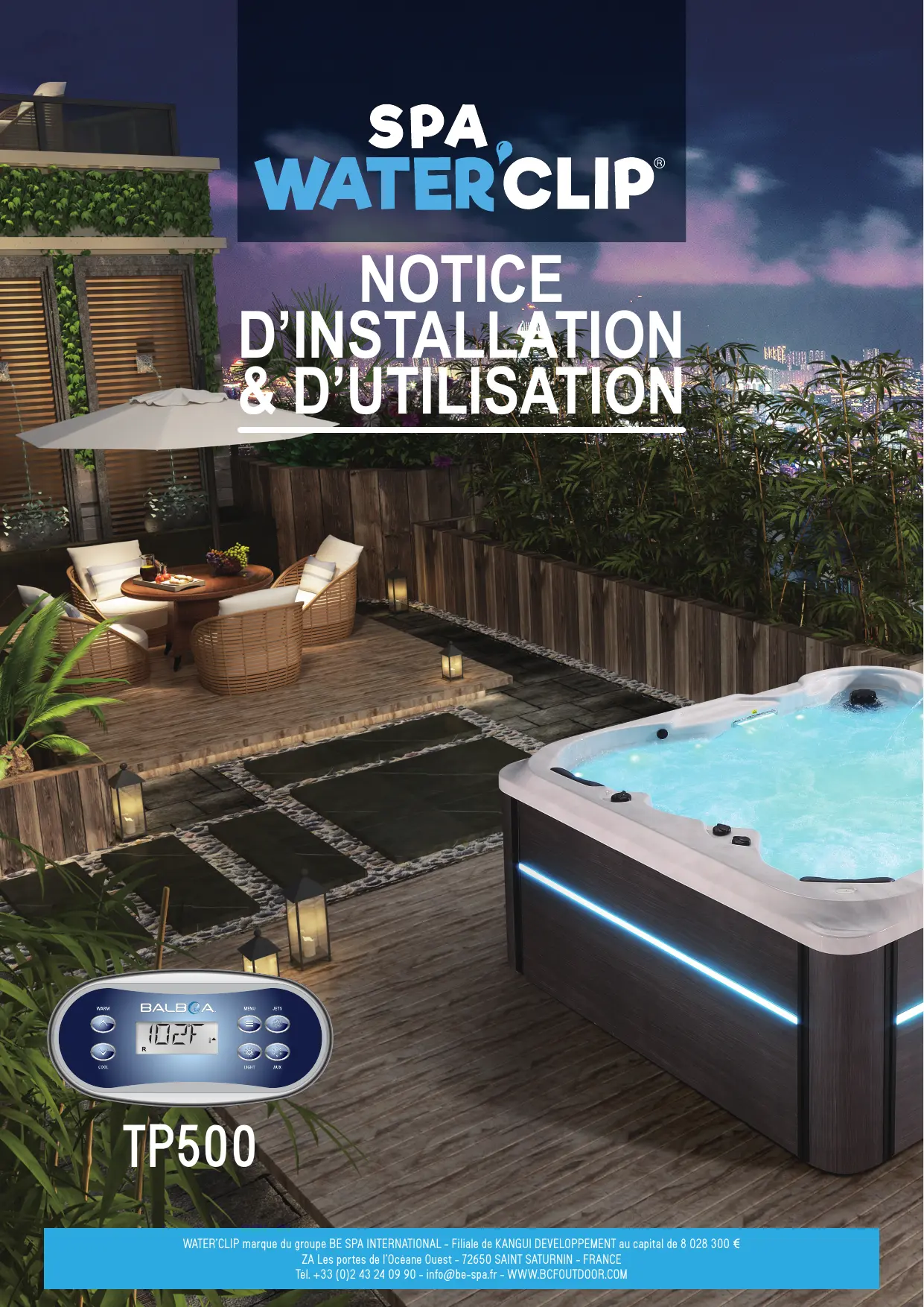 Ce manuel et son contenu sont sujets à modifications sans préavis. Bien que nous avons écrit ce manuel avec le plus de précisions possible, nous ne sommes pas responsables des erreurs ou des omissions, pertes, préjudices ou dommages causés par une mauvaise installation, ou une utilisation détournée du spa.