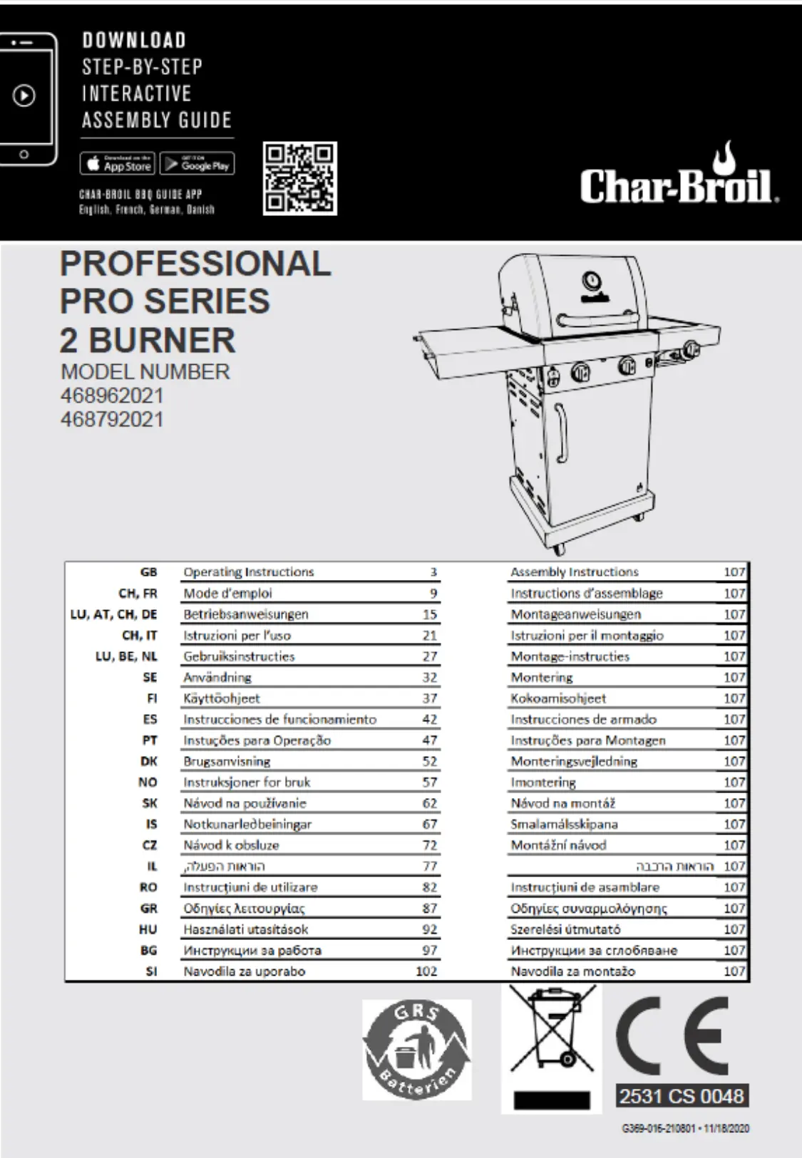 Retrouvez gratuitement la notice de l'appareil PRO INOX S2 - 468962021 - 468792021 CHAR BROIL au format PDF.