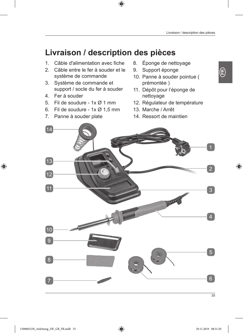 Câble d'alimentation avec fiche Câble entre le fer à souder et le système de commande Système de commande et support / socle du fer à souder Fer à souder